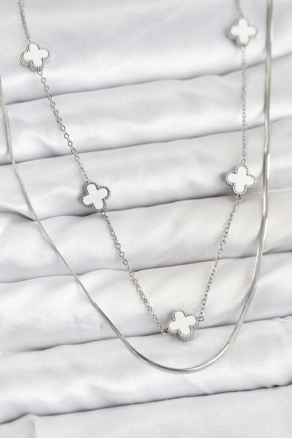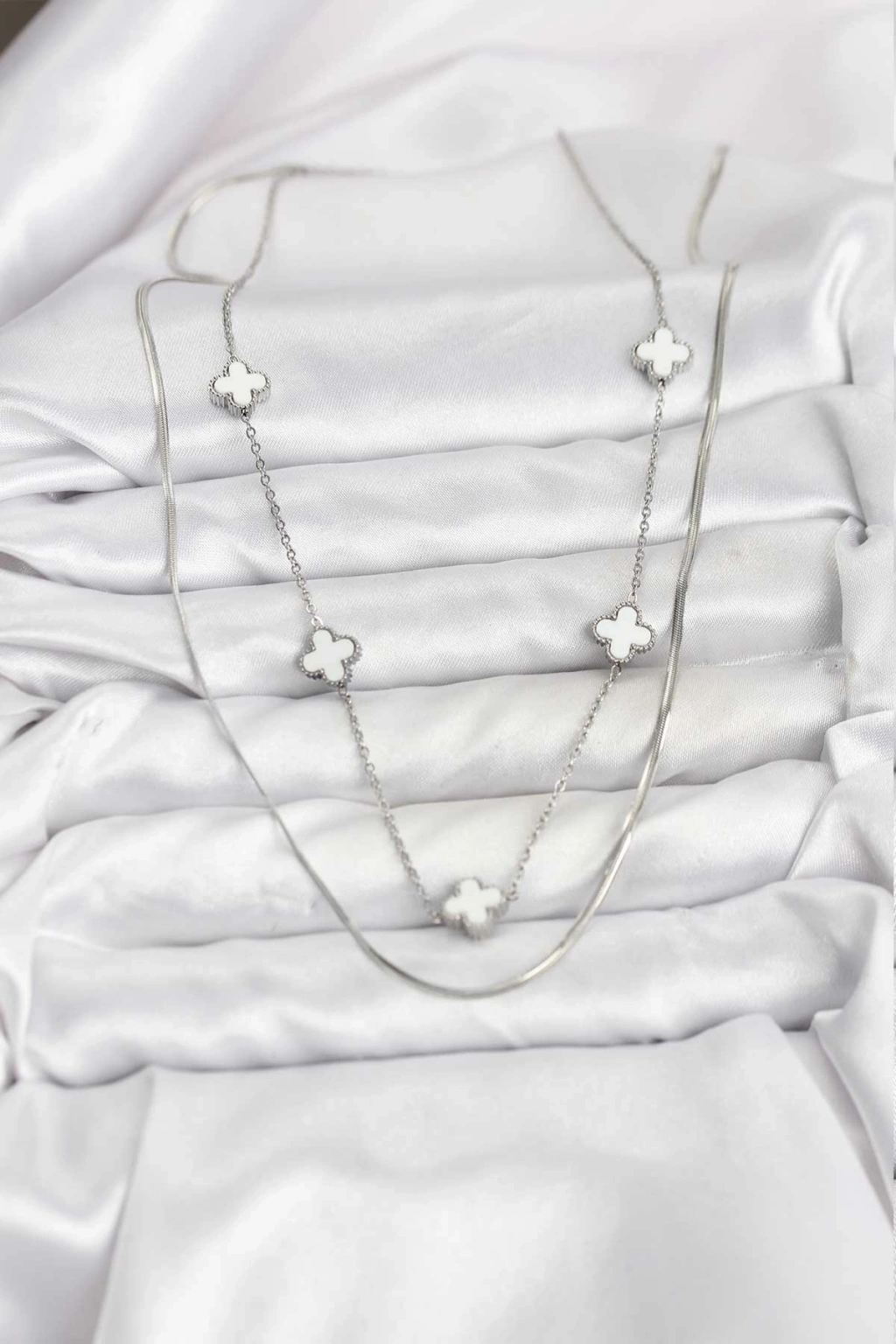 316L Çelik Zincir Gümüş Renk İtalyan Zincirli Yonca Model Kadın Kolye