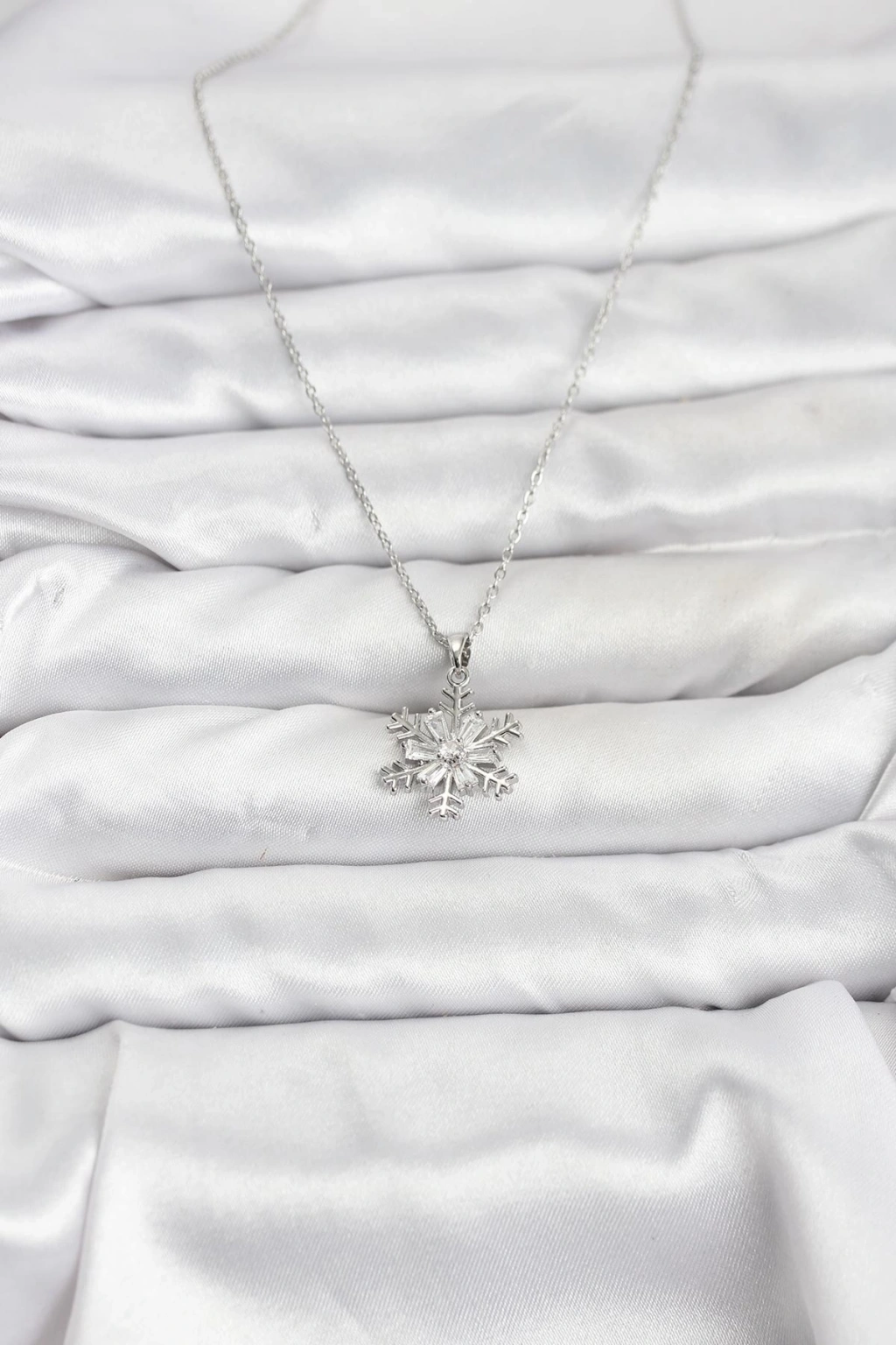 316L Çelik Zincir Gümüş Renk Kar Tanesi Model Zirkon Taşlı Kadın Kolye
