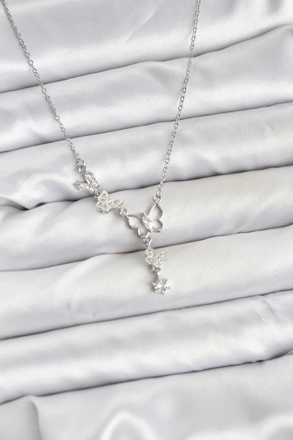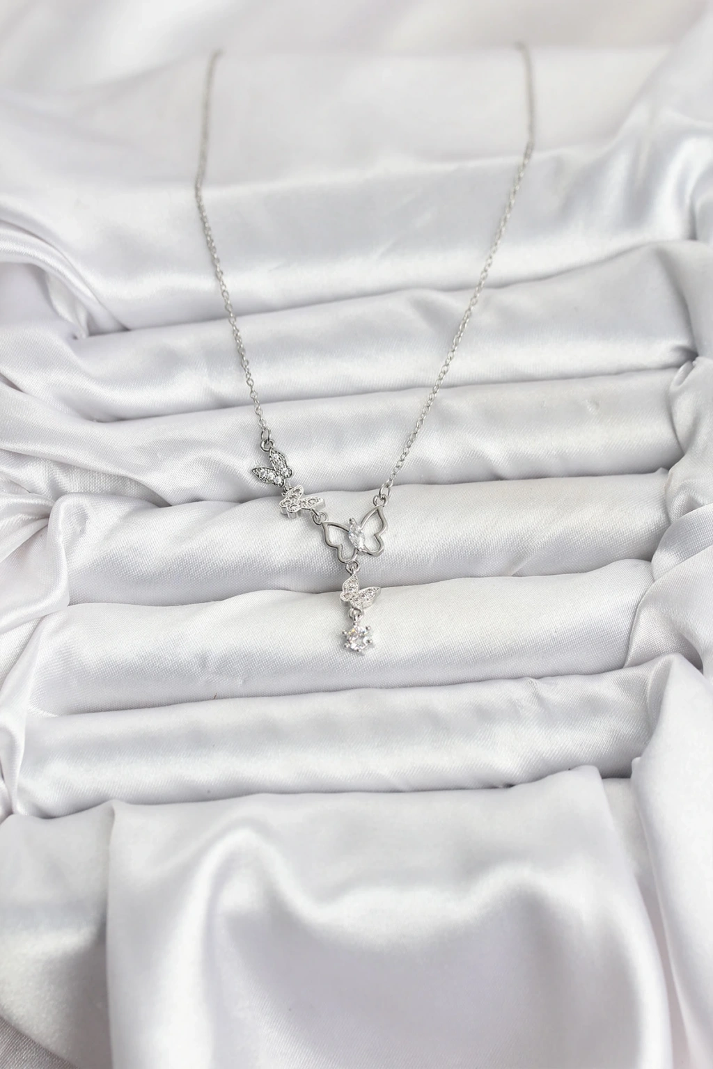 316l Çelik Zincir Gümüş Renk Kelebek Model Kadın Kolye