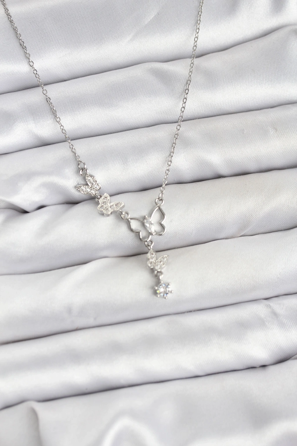 316L Çelik Zincir Gümüş Renk Kelebek Model Kadın Kolye