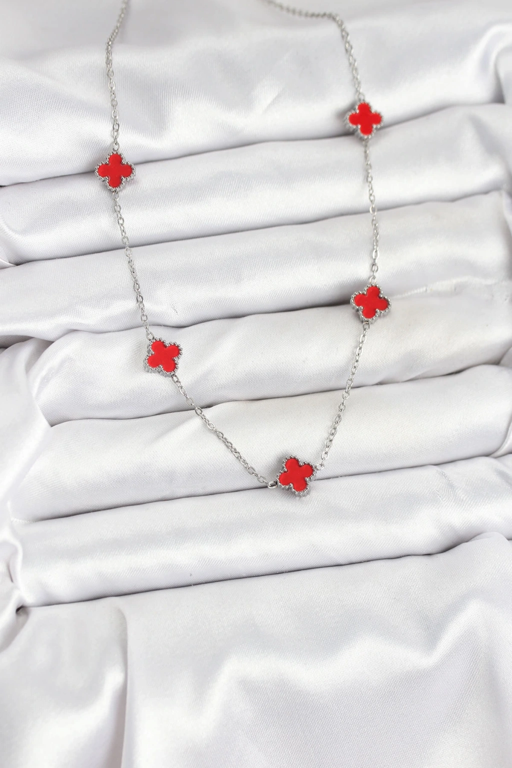316l Çelik Zincir Gümüş Renk Kırmızı Baby Boy Yonca Kadın Kolye