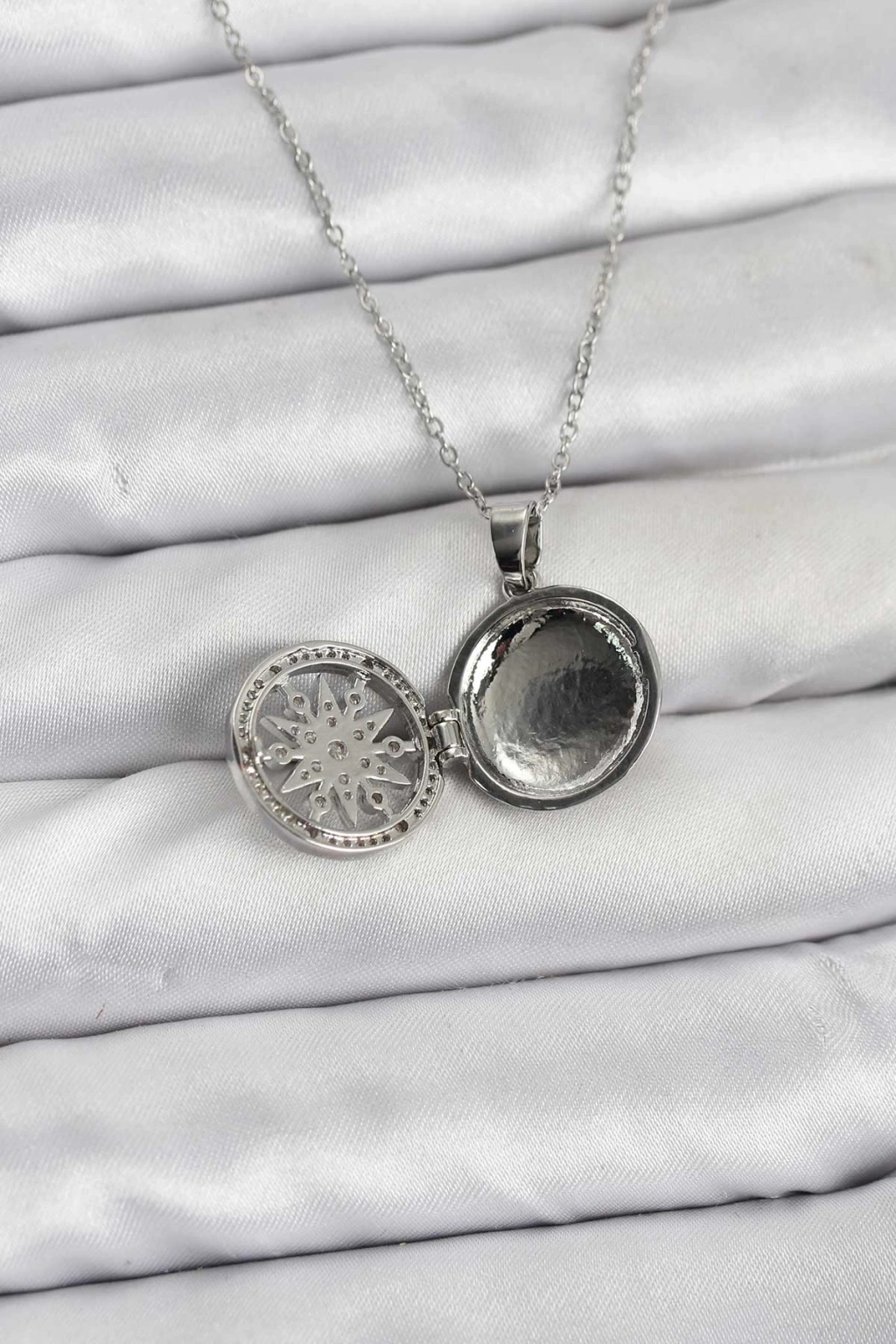 316L Çelik Zincir Gümüş Renk Kutup Yıldızı Kapaklı Model Kadın Kolye