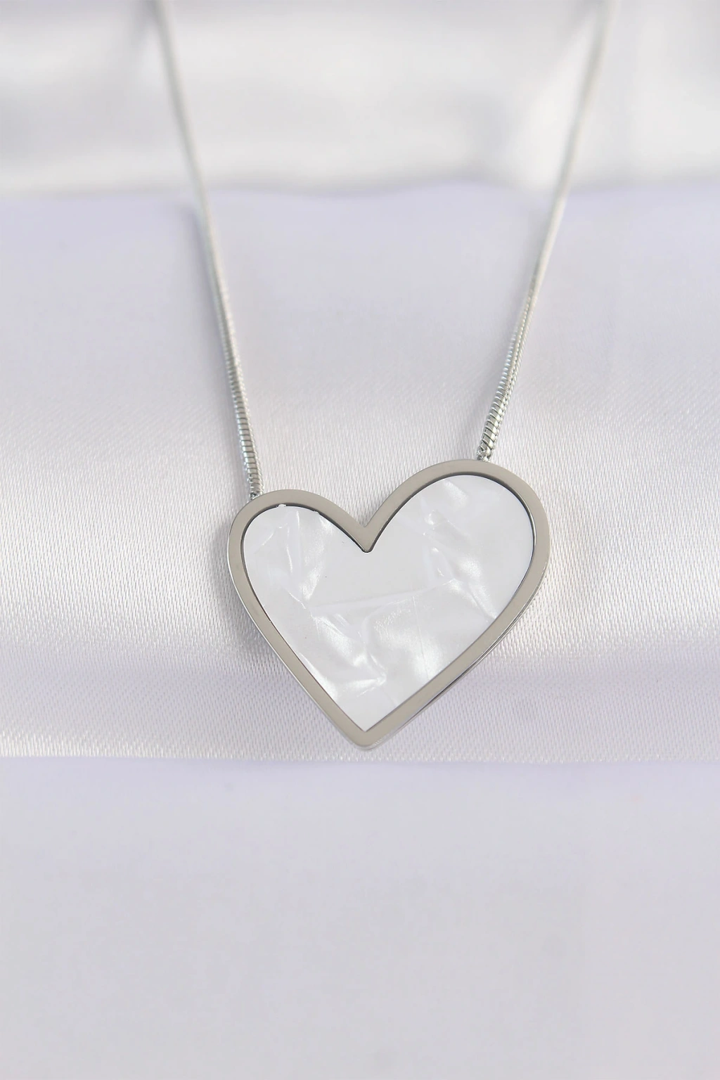 316l Çelik Zincir Gümüş Renk Mermer Desenli Kalp Kolye