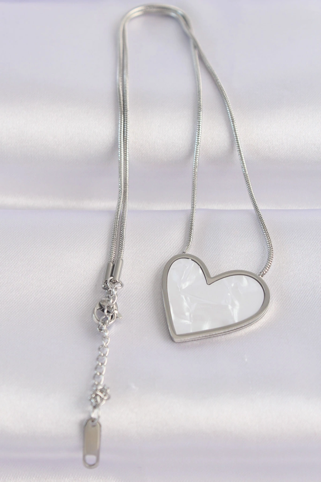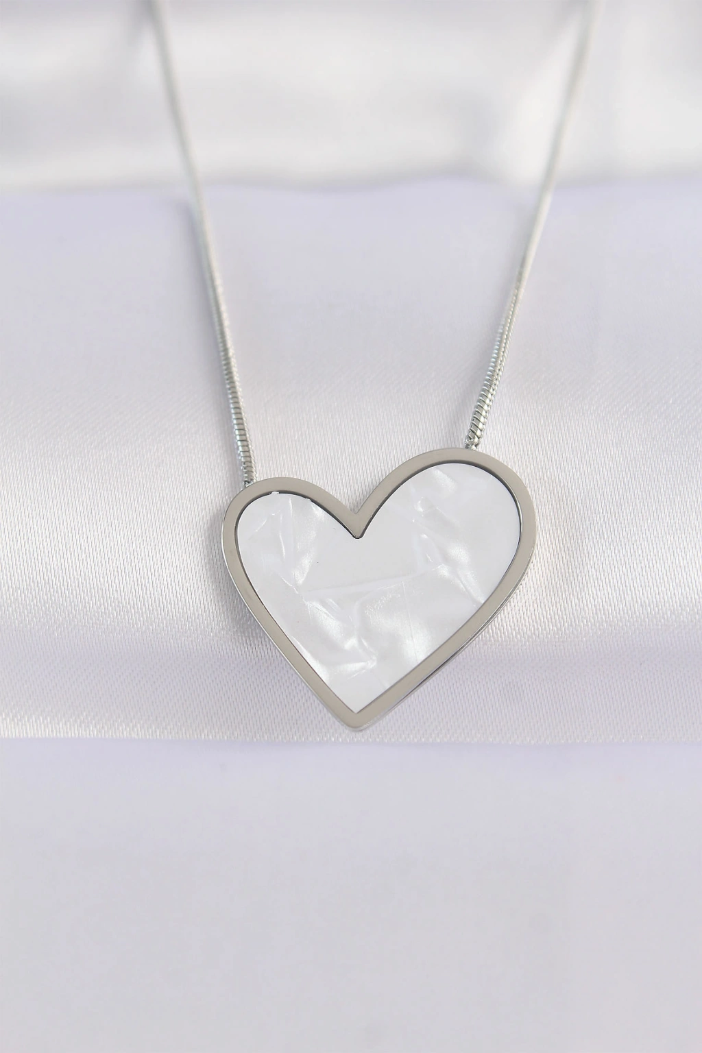 316L Çelik Zincir Gümüş Renk Mermer Desenli Kalp Kolye