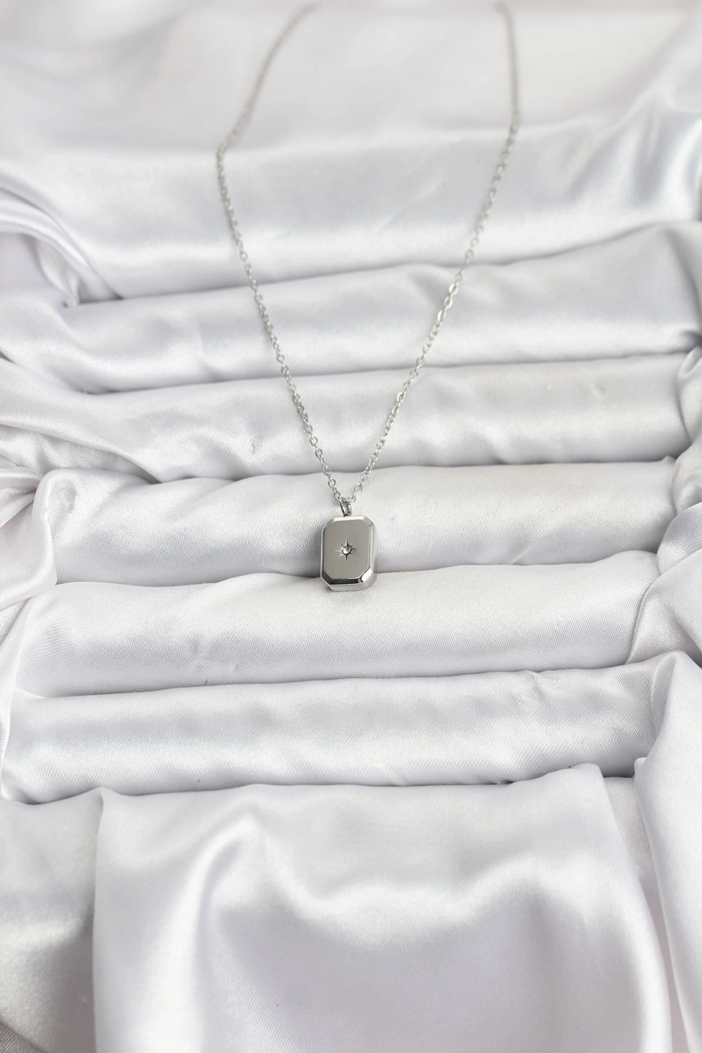 316L Çelik Zincir Gümüş Renk Minimal Kutup Yıldızı Model Kadın Kolye