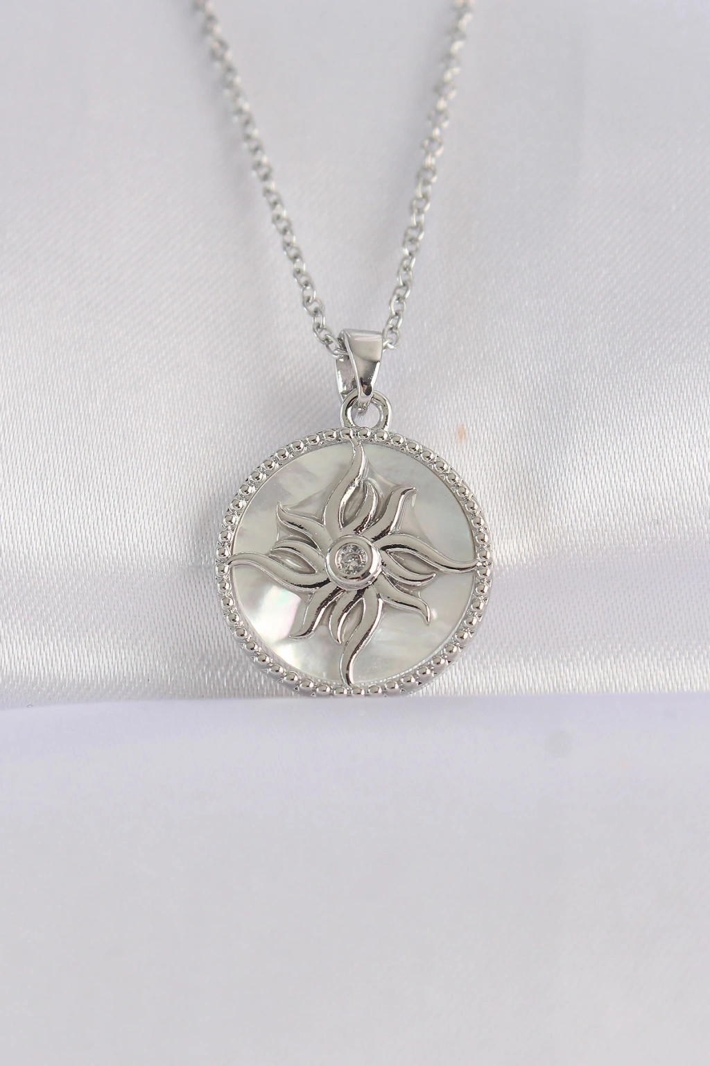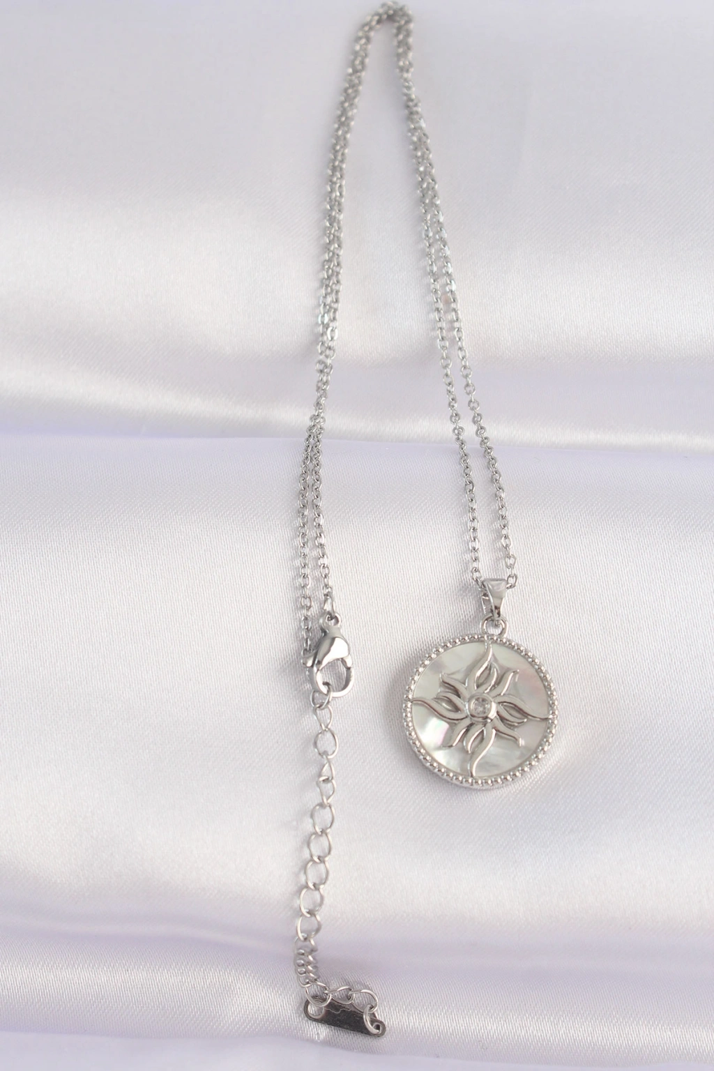 Pirinç Gümüş Renk Çiçek Model Kadın Kolye