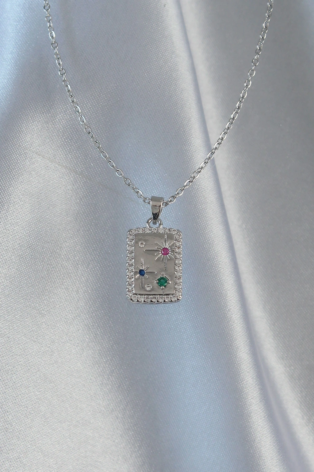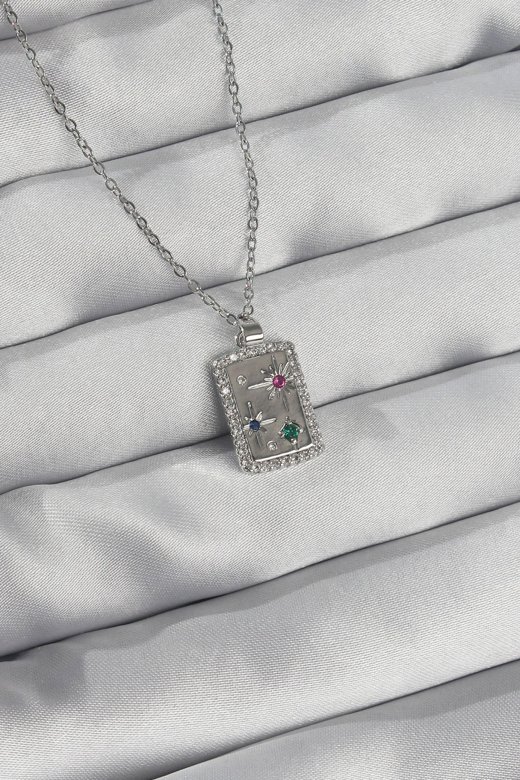 316l Çelik Zincir Gümüş Renk Renkli Zirkon Taşlı Vintage Kolye