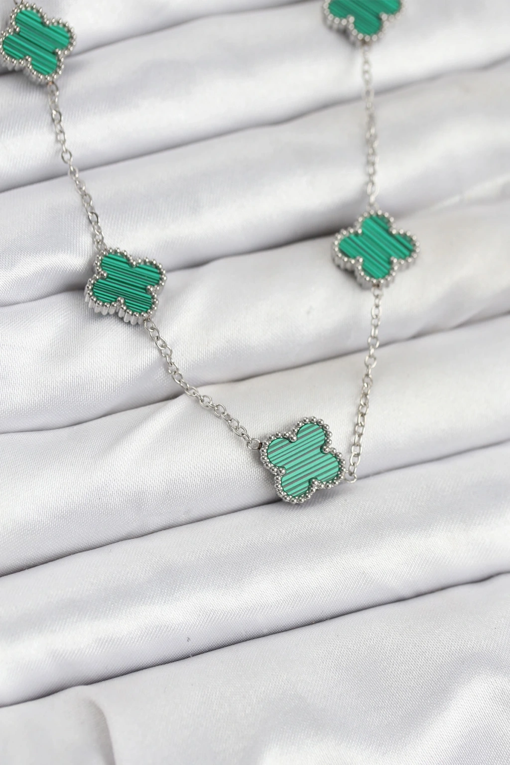 316l Çelik Zincir Gümüş Renk Yeşil Yonca Kadın Kolye