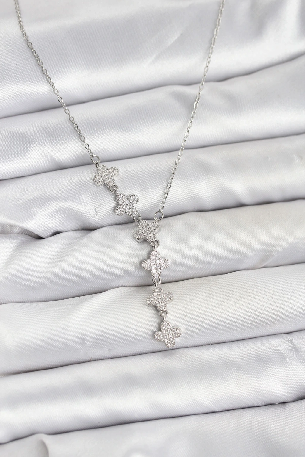 316l Çelik Zincir Gümüş Renk Yonca Model Kadın Kolye