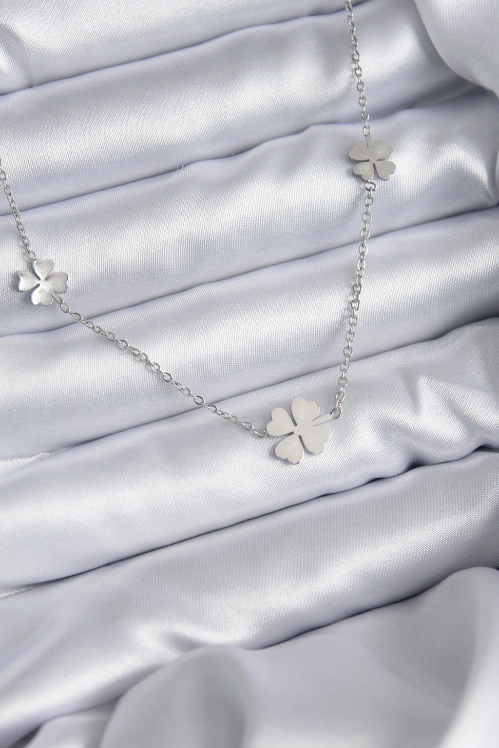 316L Çelik Zincir Gümüş Renk Yonca Model Kadın Kolye