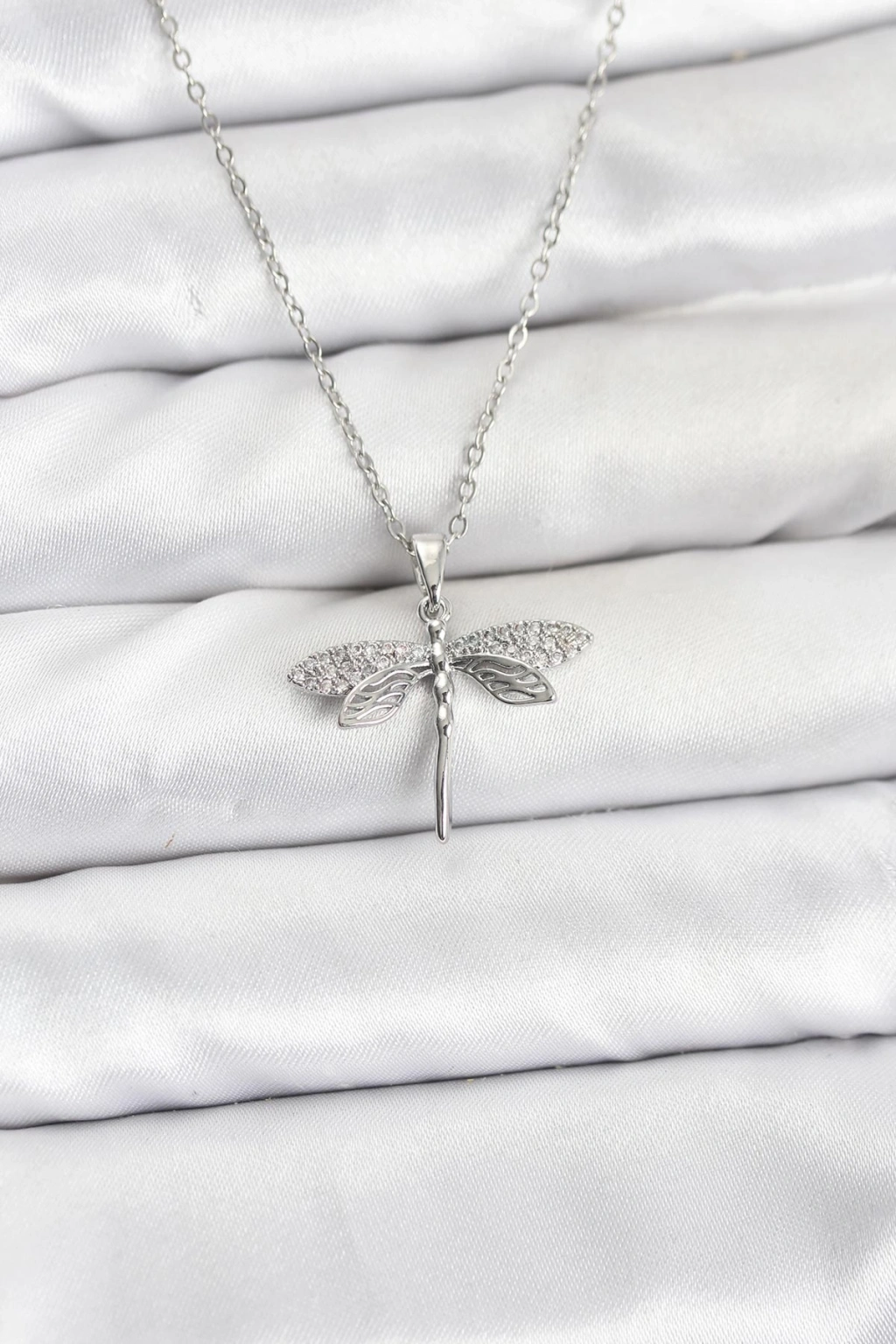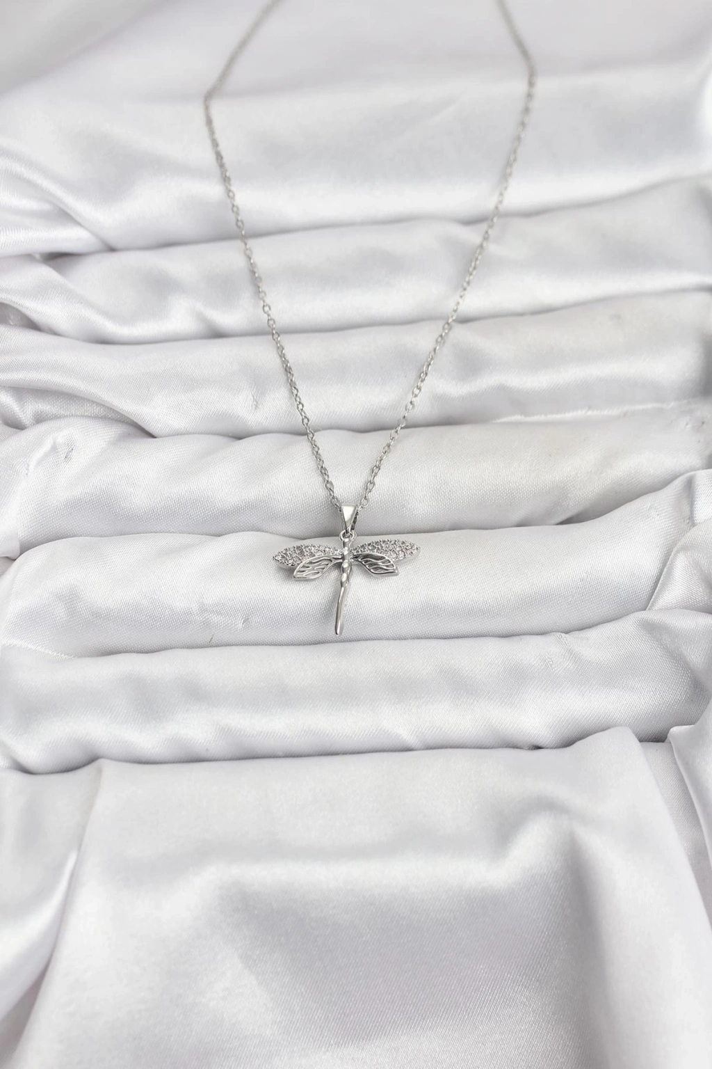 316L Çelik Zincir Gümüş Renk Yusufçuk Model Zirkon Taşlı Kadın Kolye
