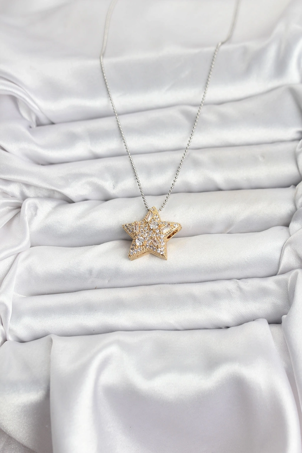 316L Çelik Gold Renk Zirkon Taşlı Kutup Yıldızı Model Kadın Kolye