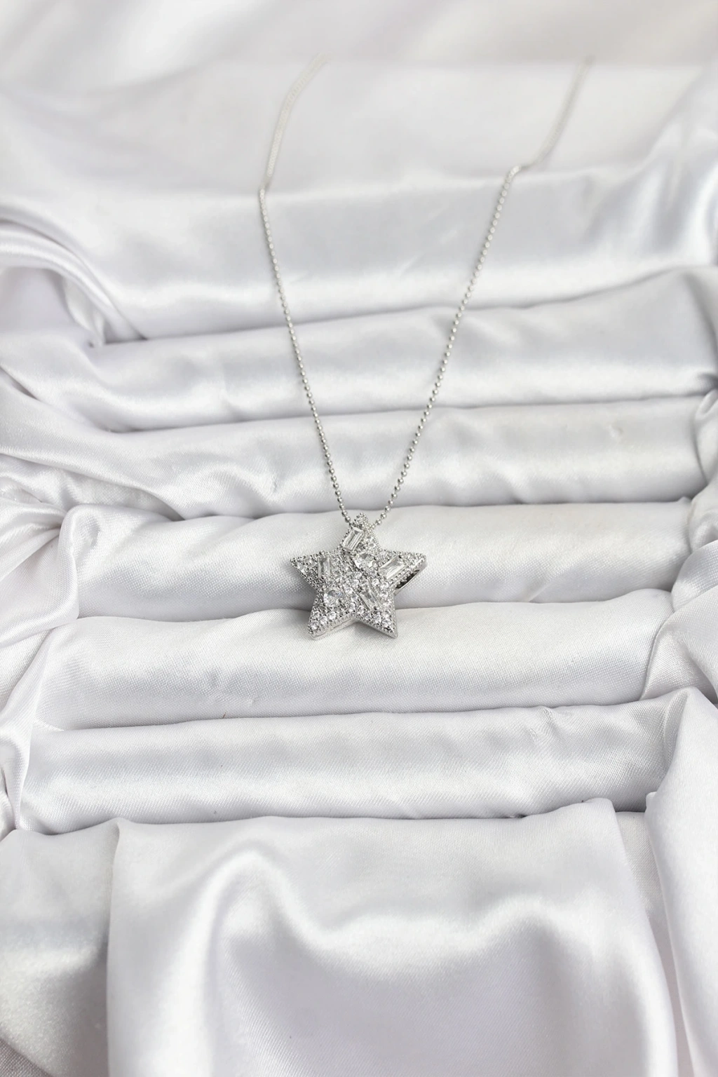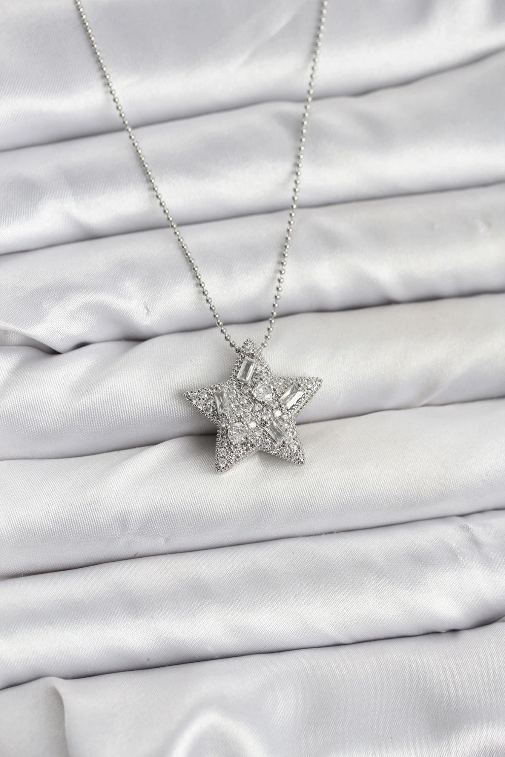 316l Çelik Zincir Gümüş Renk Zincirli Gümüş Yıldız Model Kadın Kolye