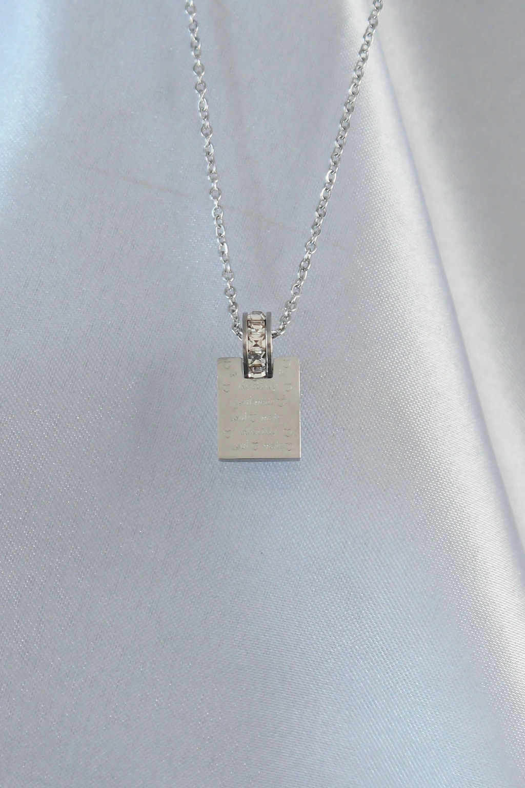 316l Çelik Zincir Gümüş Renk Zirkon Taşlı Aşk Mektubu Kolye