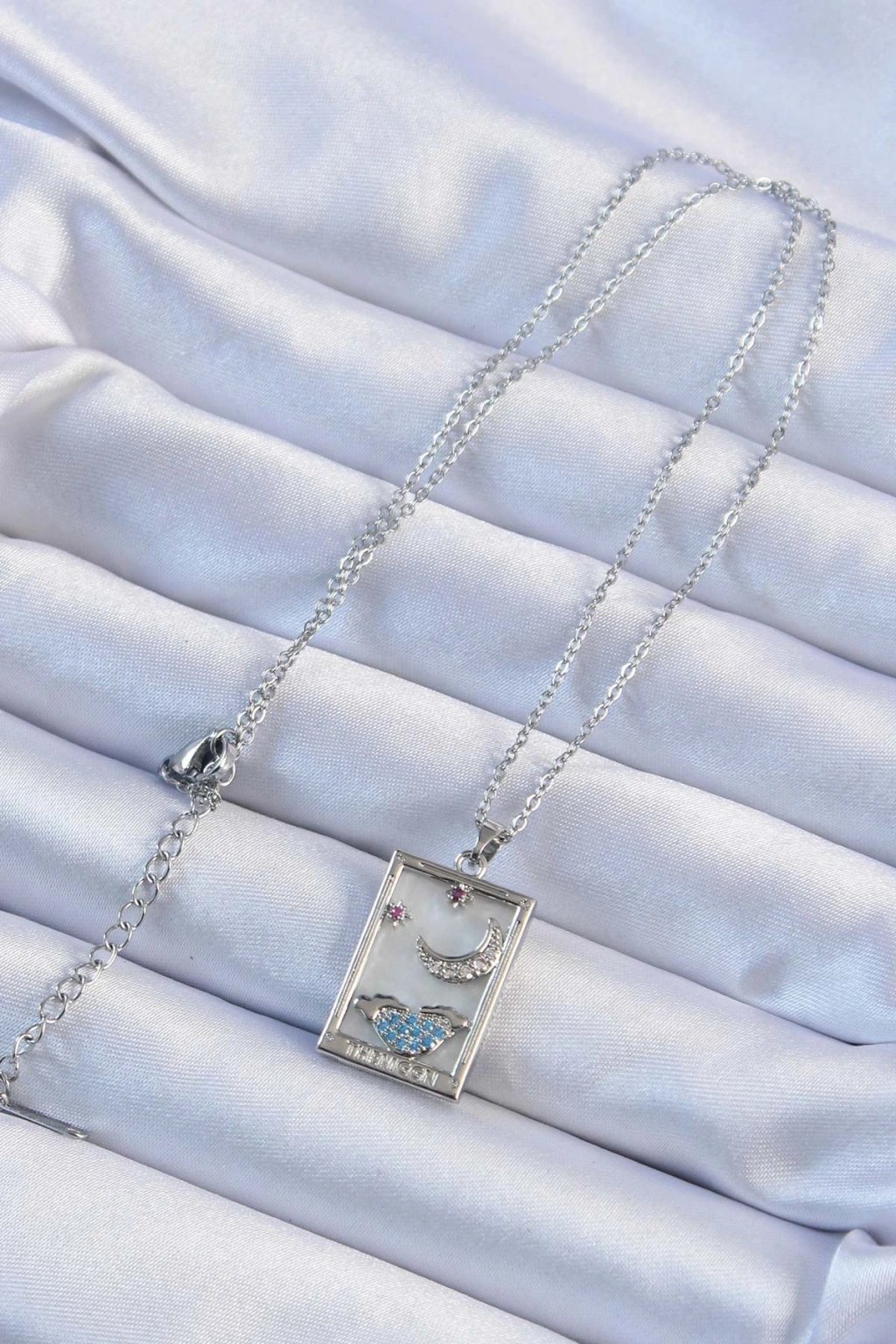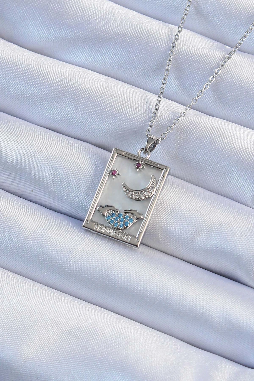 316L Çelik Zincir Gümüş Renk Zirkon Taşlı Ay Figürlü Tarot Kolye