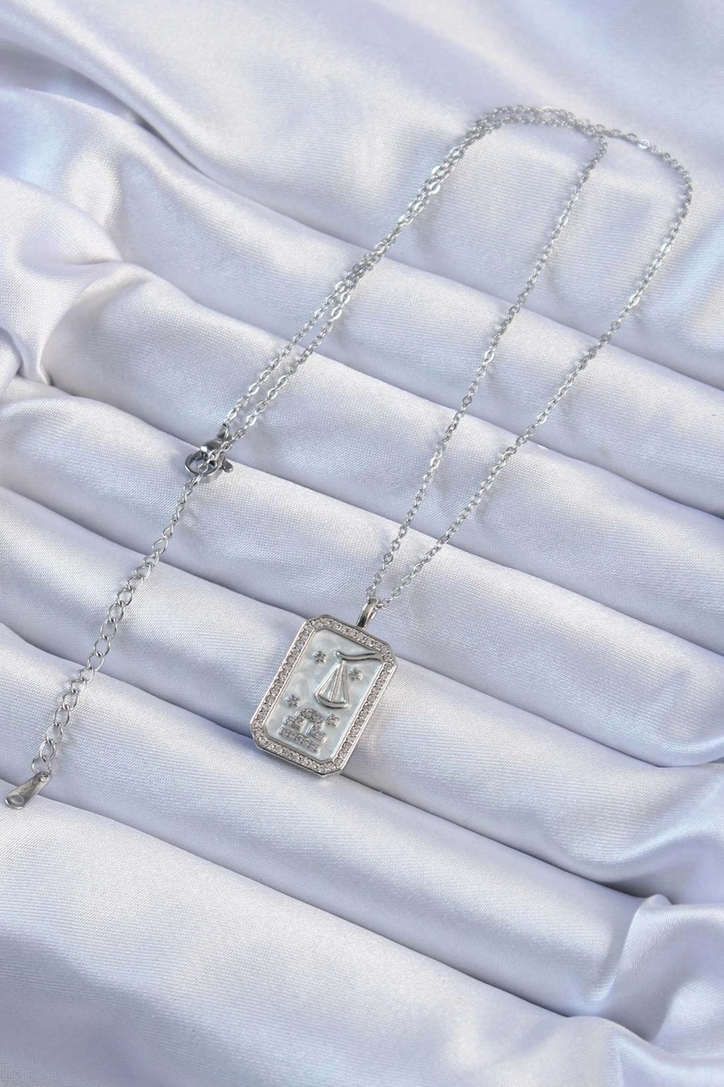 316L Çelik Zincir Gümüş Renk Zirkon Taşlı Çerçeveli Tarot Kolye