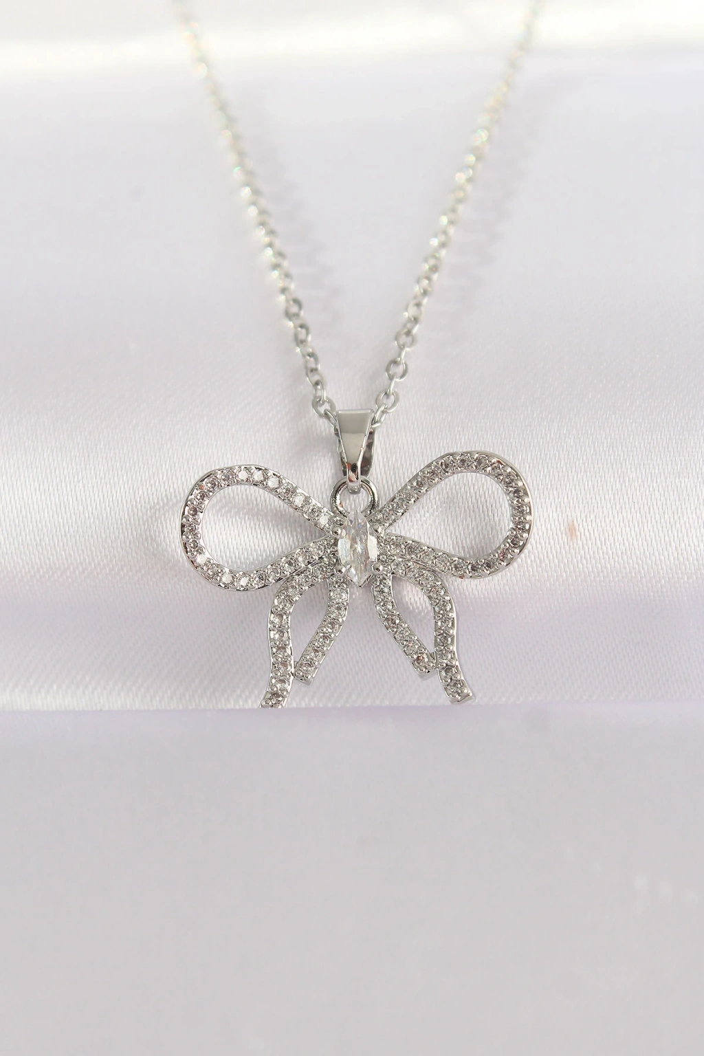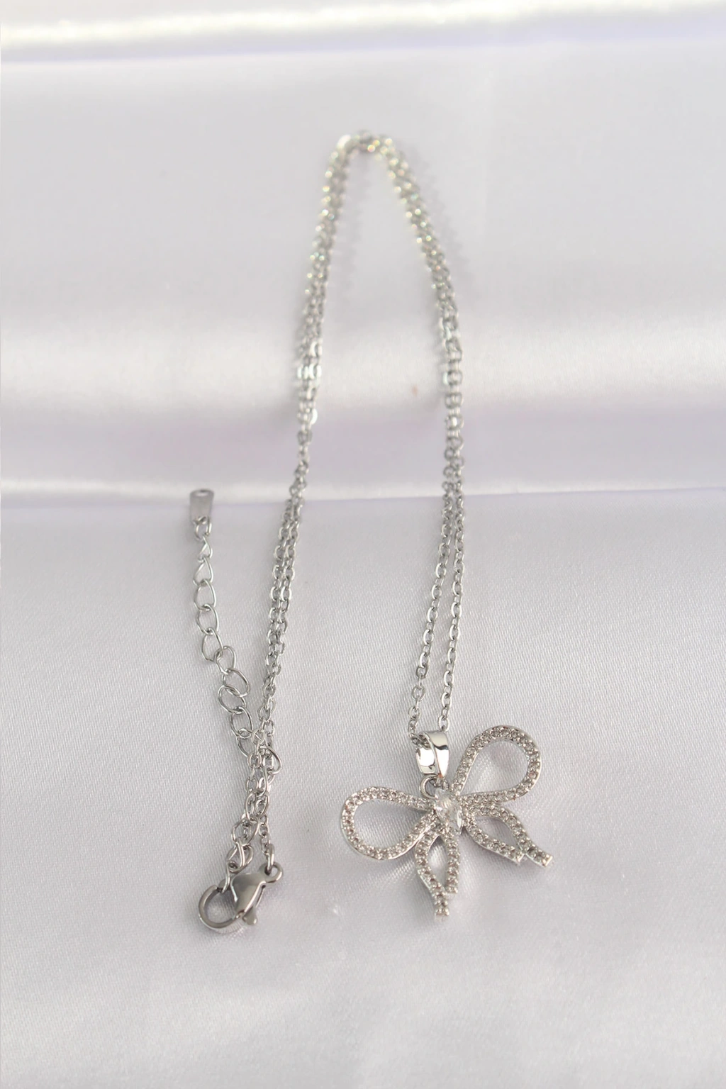 316l Çelik Zincir Gümüş Renk Zirkon Taşlı Fiyonk Kolye
