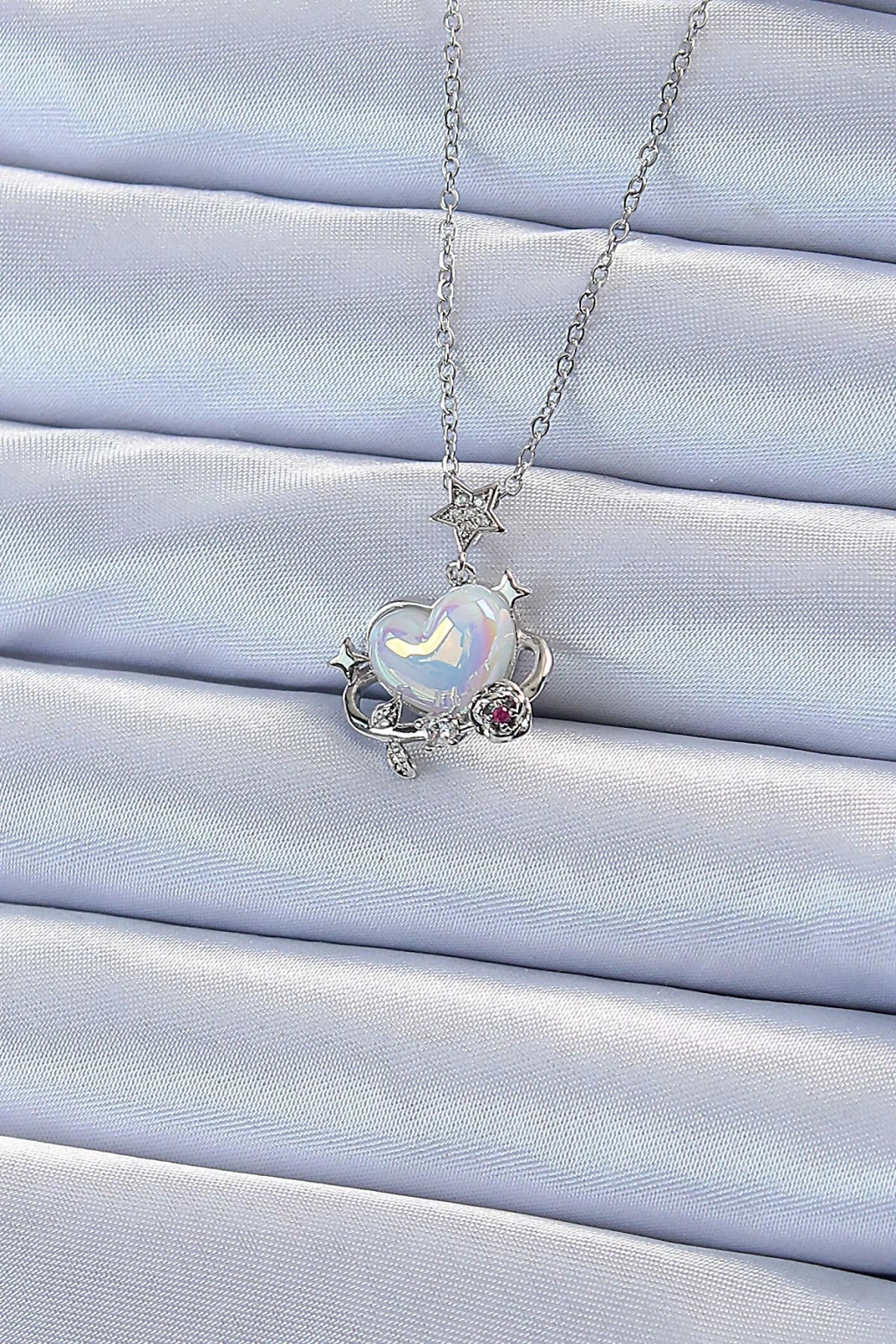 316l Çelik Zincir Gümüş Renk Zirkon Taşlı Gezegen Görünümlü Kalp Kolye