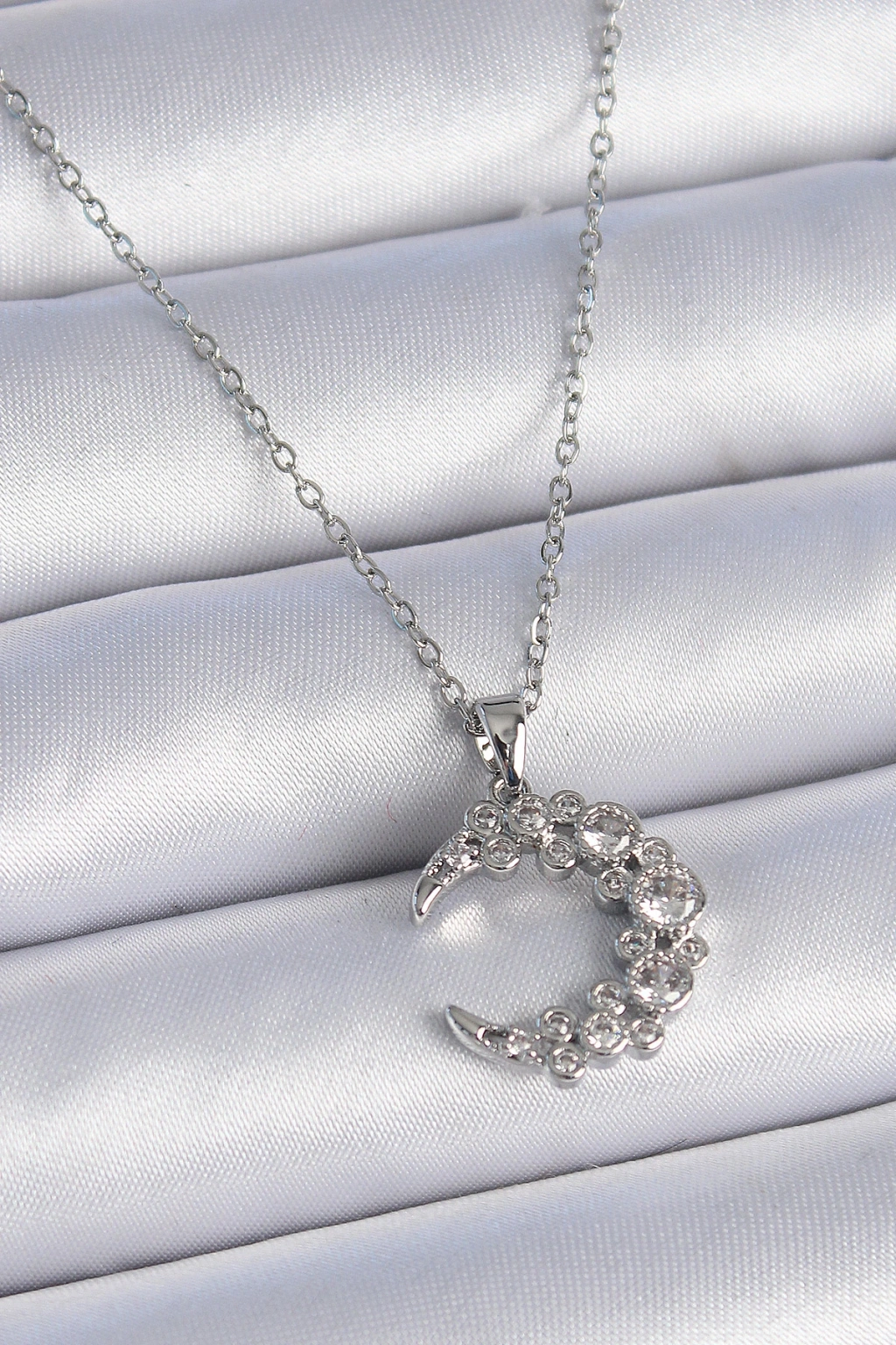 316l Çelik Zincir Gümüş Renk Zirkon Taşlı Hilal Model Kadın Kolye