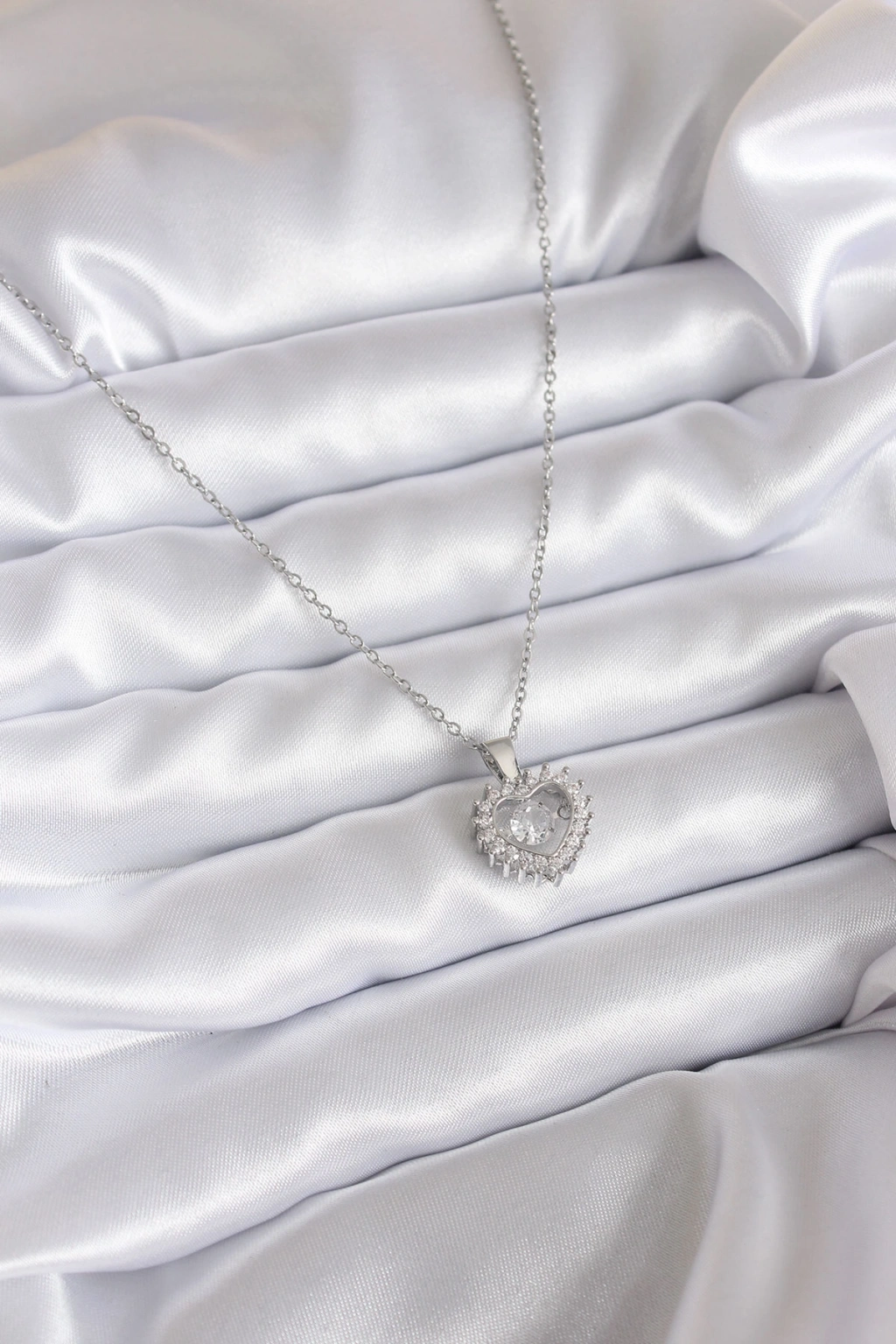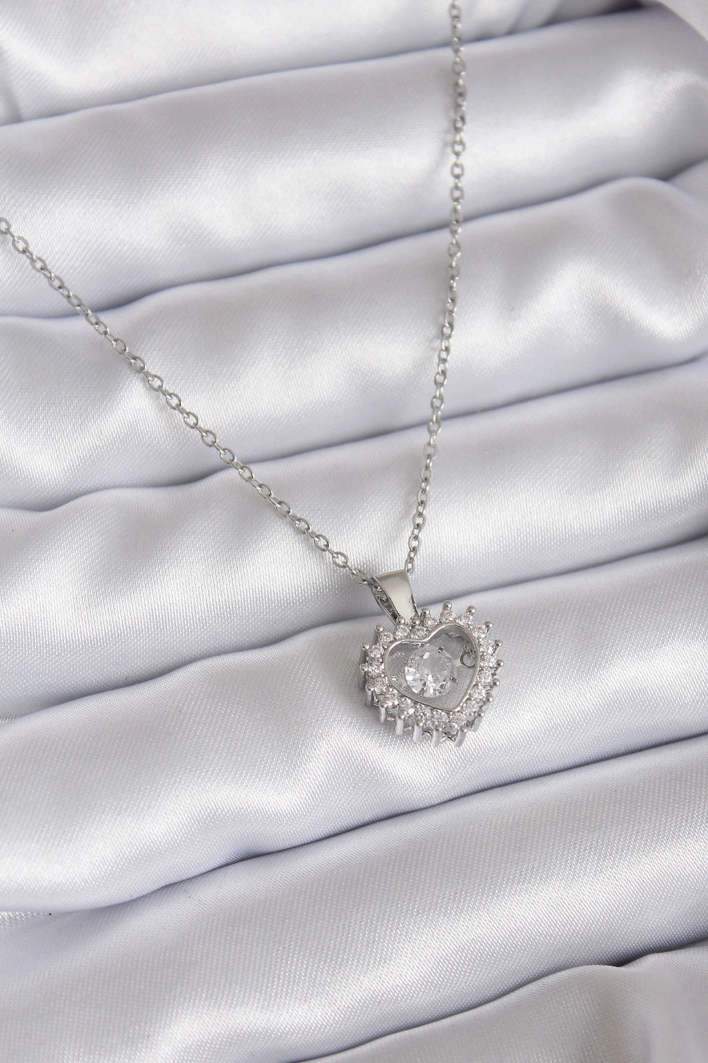 316L Çelik Zincir Gümüş Renk Zirkon Taşlı Kalp Model Kadın Kolye