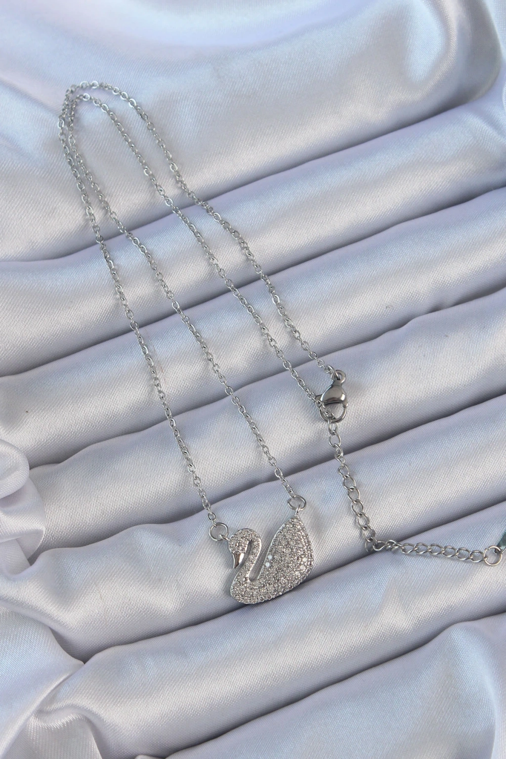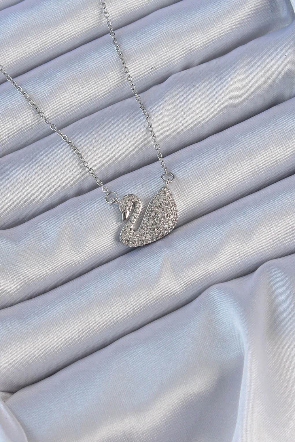 316l Çelik Zincir Gümüş Renk Zirkon Taşlı Kuğu Kolye