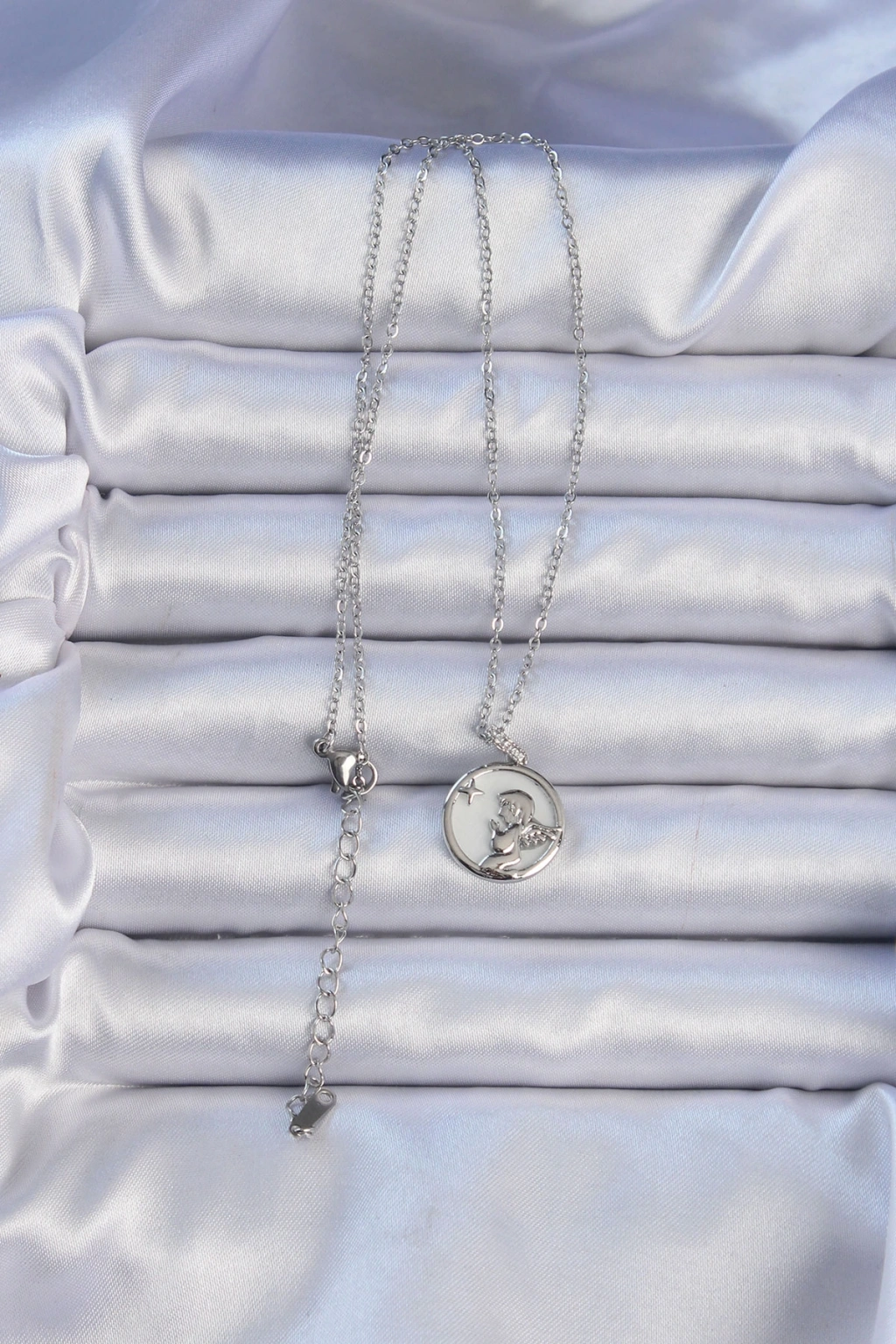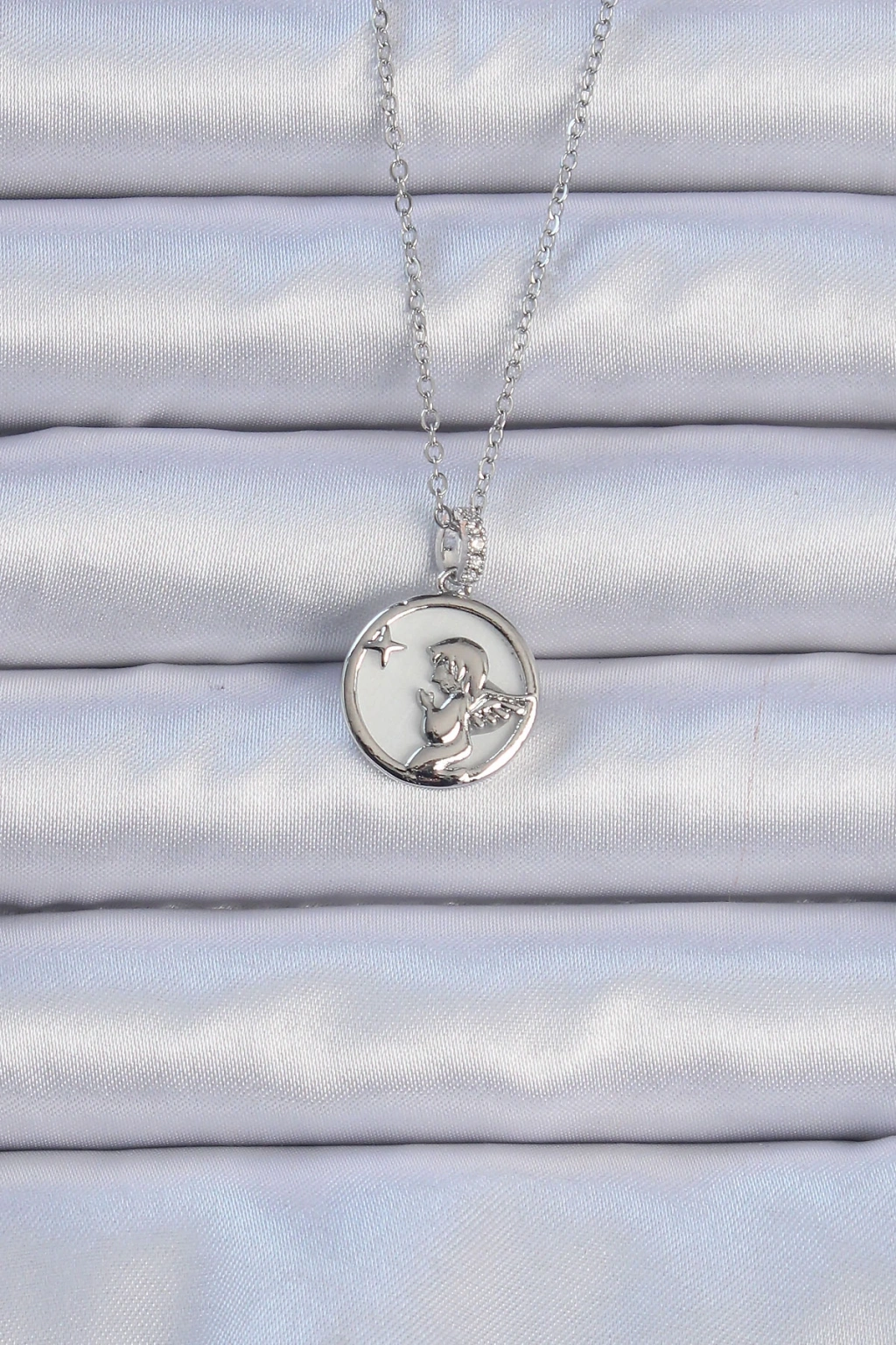 316l Çelik Zincir Gümüş Renk Zirkon Taşlı Mineli Melek Kolye