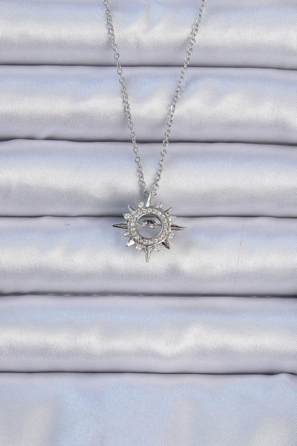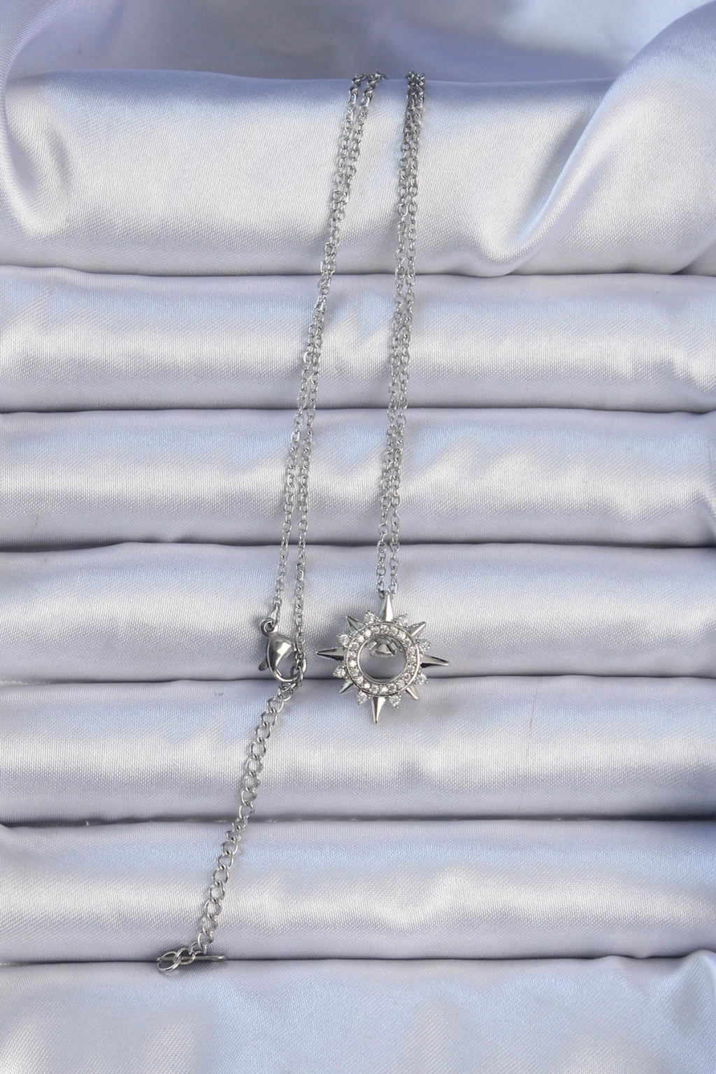 316L Çelik Zincir Gümüş Renk Zirkon Taşlı Parlayan Yıldız Kolye