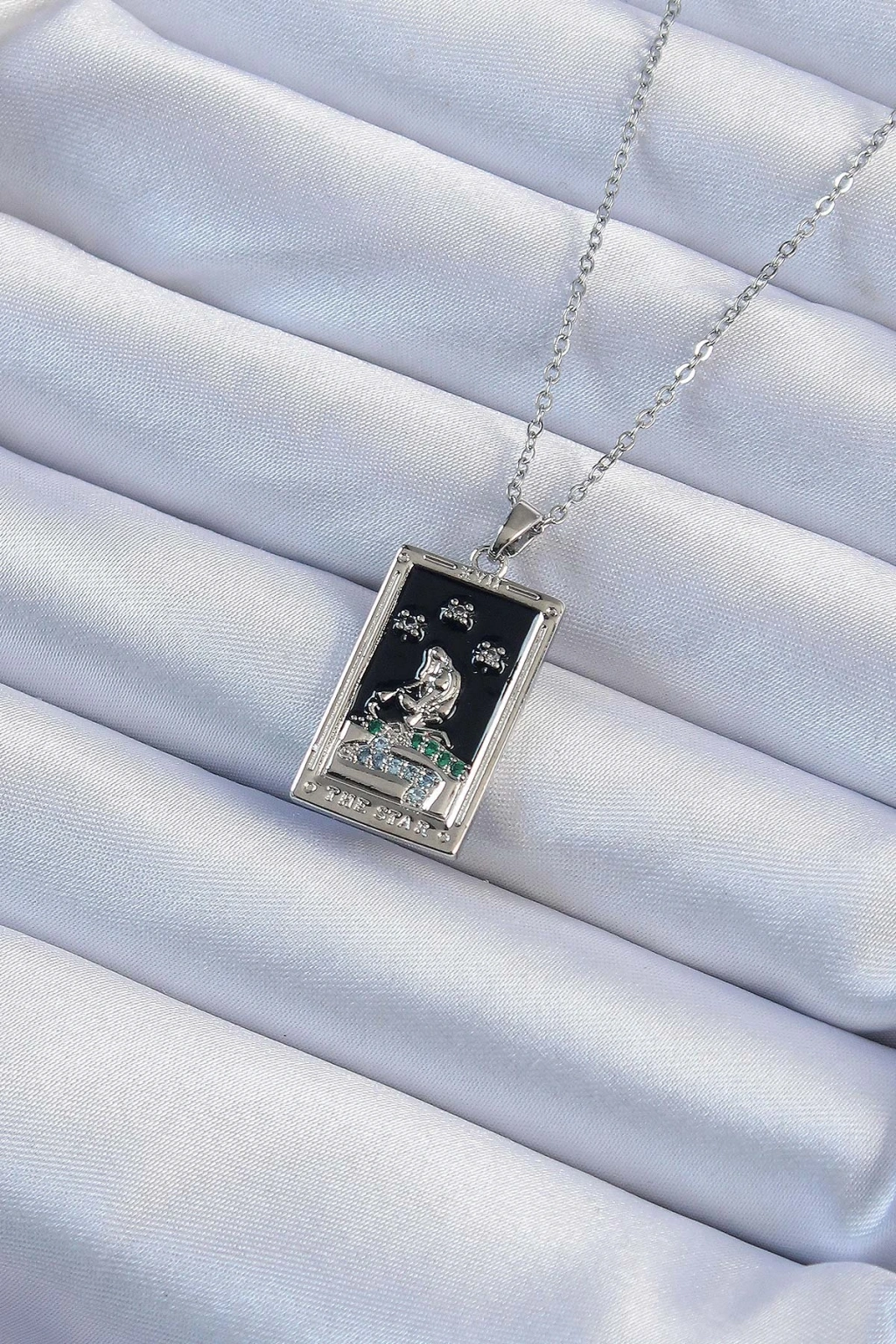 316l Çelik Zincir Gümüş Renk Zirkon Taşlı Siyah Mineli Kız Figürlü Tarot Kolye