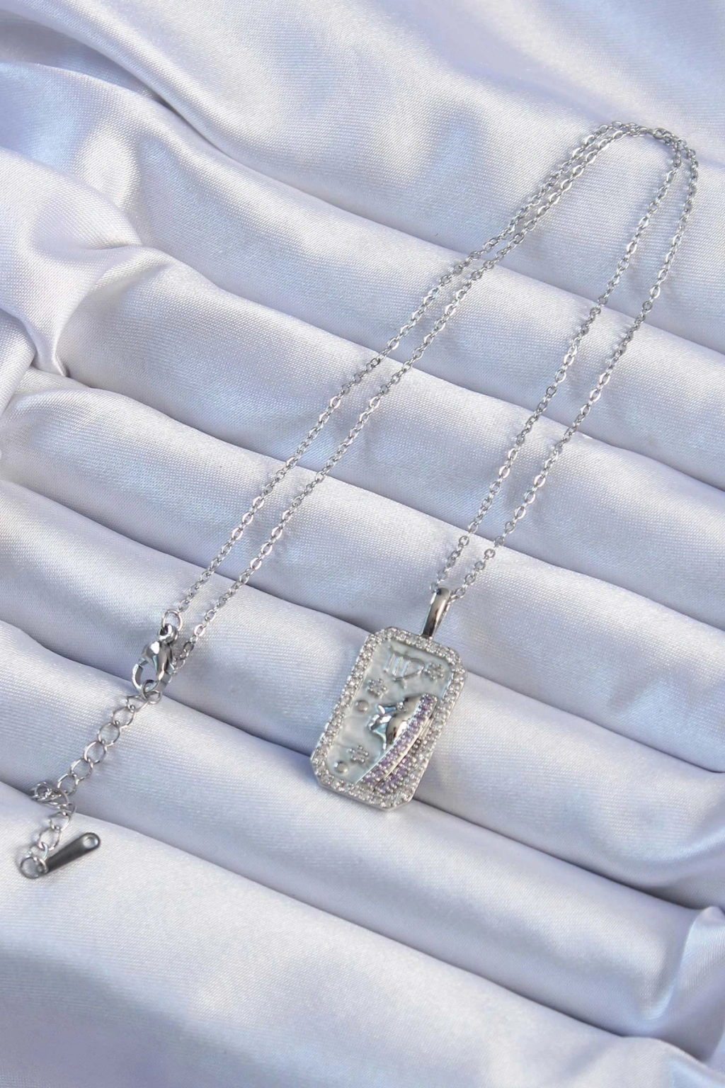 Pirinç Renkli Zirkon Taşlı Dikdörtgen Model Gümüş Renk Kadın Y Kolye