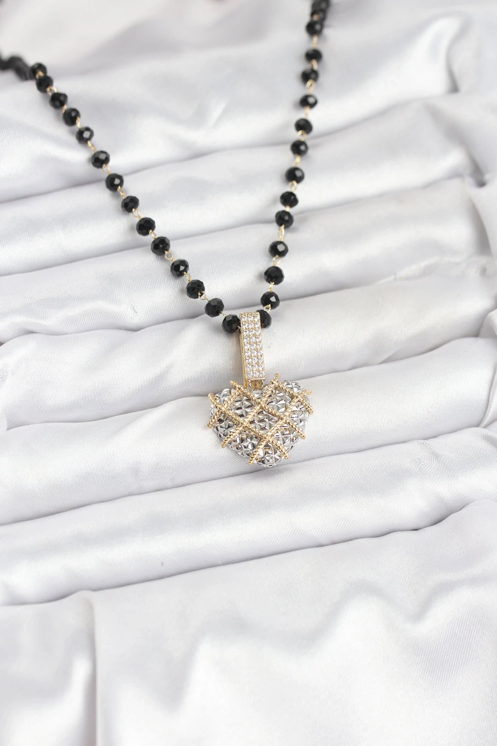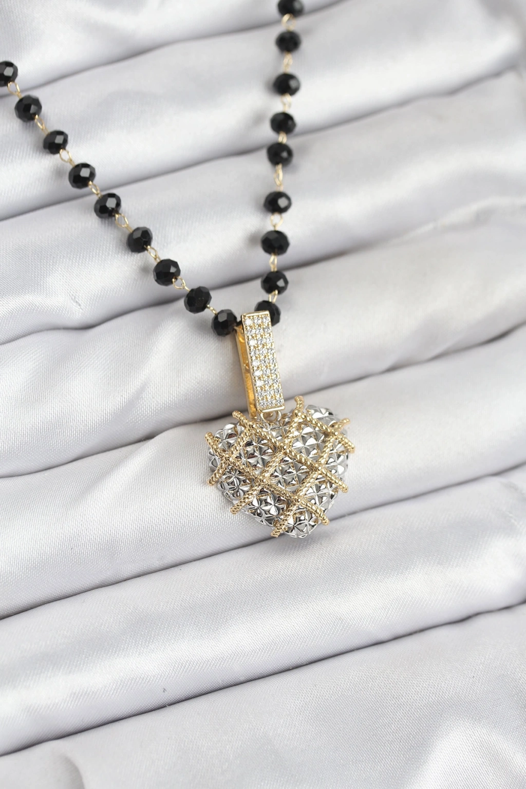 316L Çelik Zincir Kristal Boncuklu Kalpli Kadın Kolye