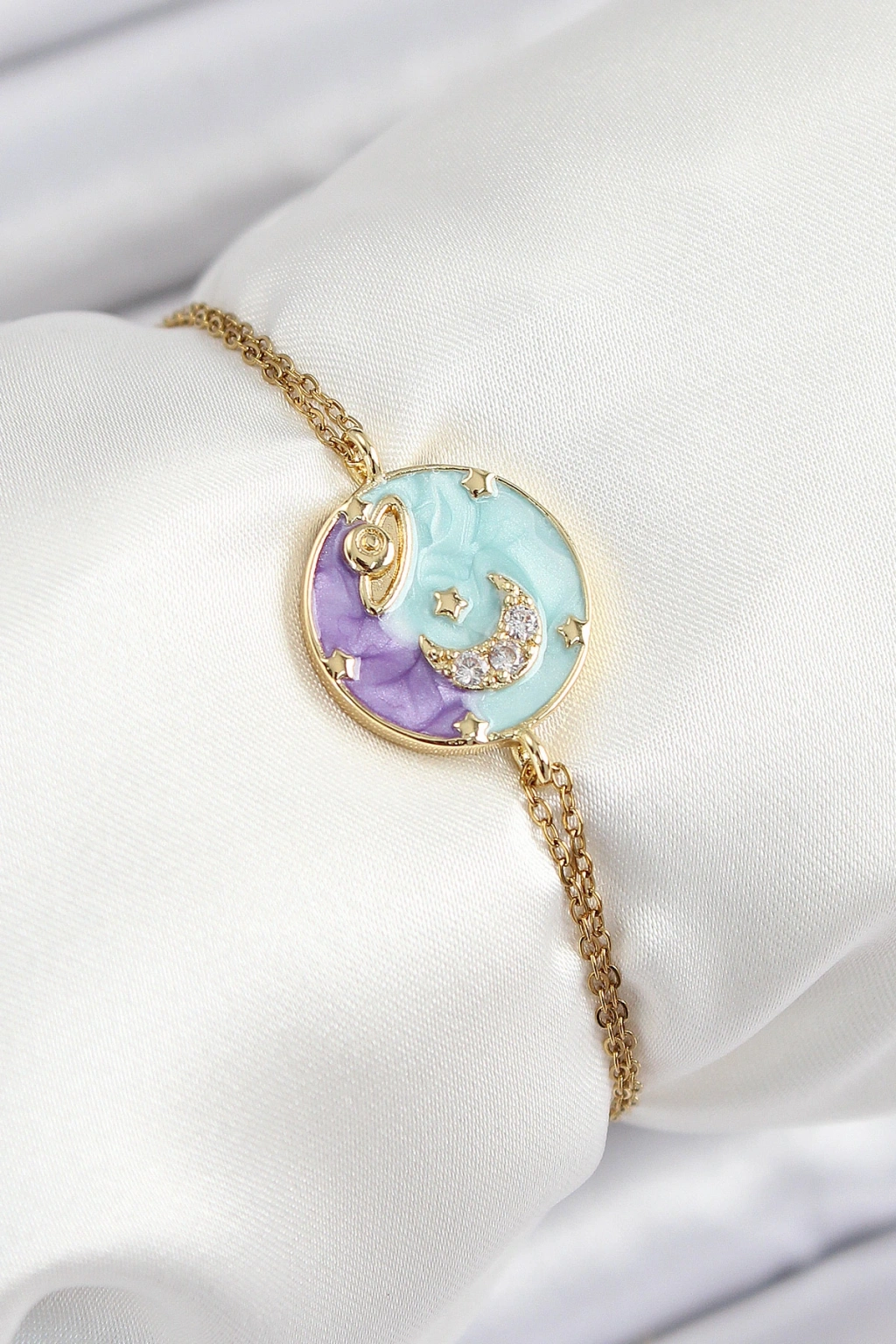 316l Çelik Zincir Mineli Sanatsal Portre Zirkon Taşlı Gezegen Model Gold Renk Kadın Bileklik