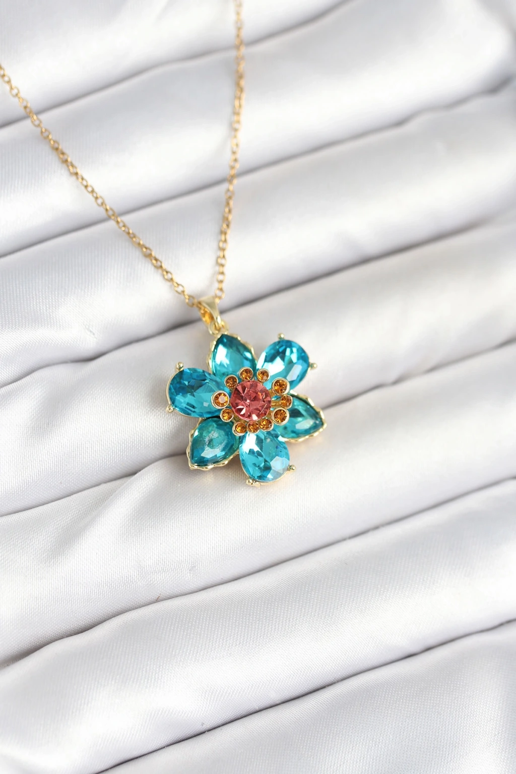316L Çelik Zincirli Mavi Çiçek Model Kadın Kolye