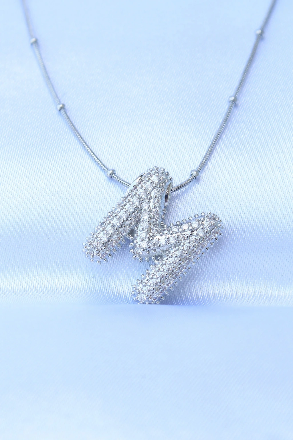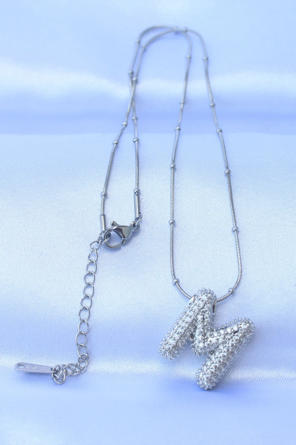 316l Çelik Zincirli Zirkon Taşlı M Harfli Gümüş Renk Bubble Kolye