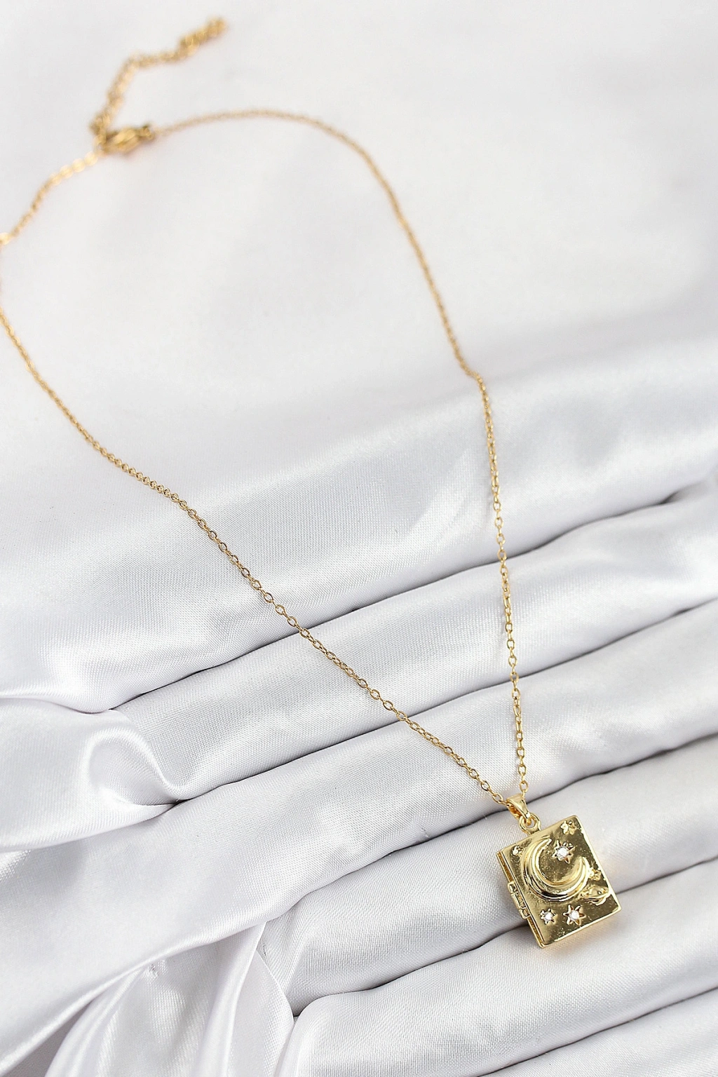 316l Çelik Zirkon Taşlı Açılabilr Kapaklı Kitap Model Gold Renk Kadın Kolye