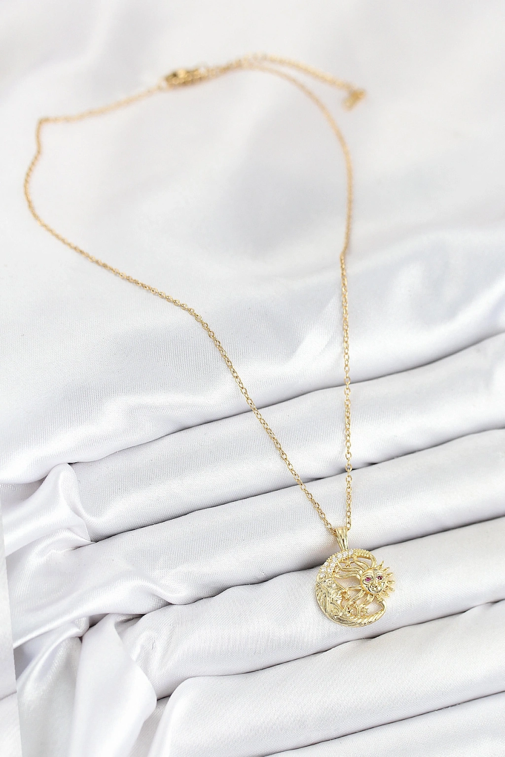 316L Çelik Zirkon Taşlı Ay Ve Güneş Model Gold Renk Kadın Kolye