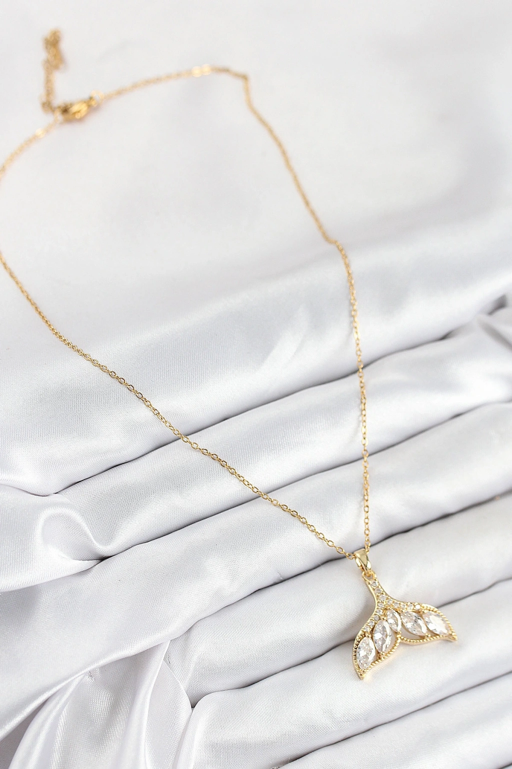 316l Çelik Zirkon Taşlı Balık Kuyruğu Model Gold Renk Kadın Kolye
