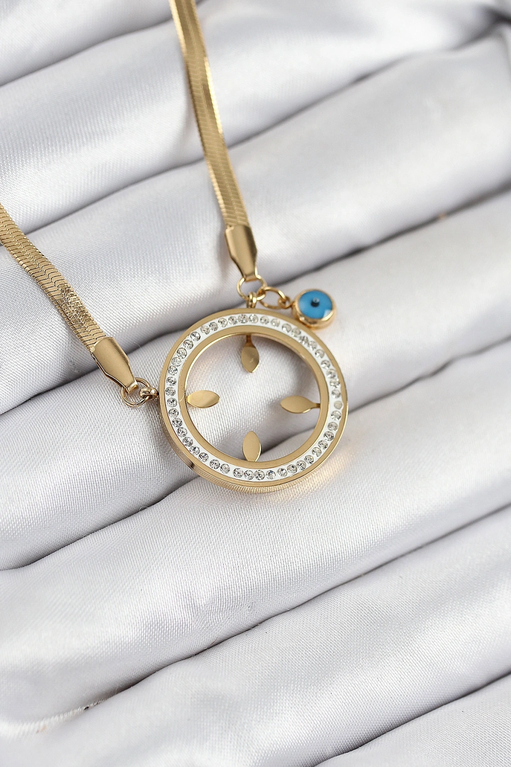 316L Çelik Zirkon Taşlı Çeyrek Takılabilir Gold Renk Kadın Kolye