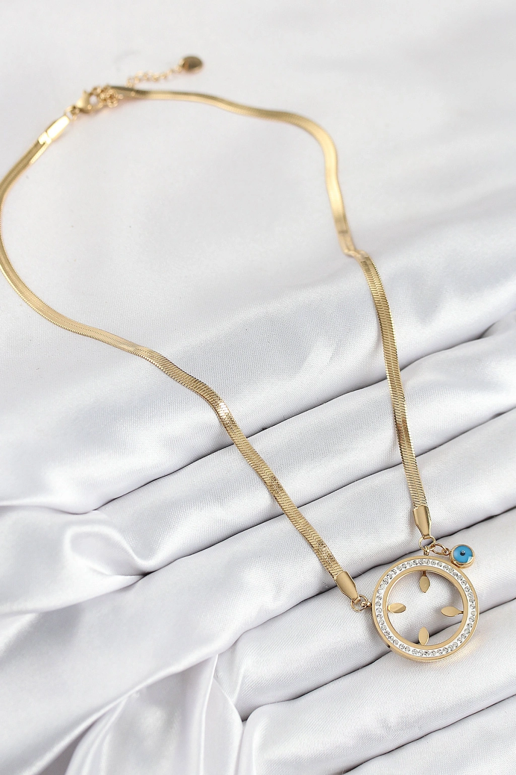 316L Çelik Zincir Gold Renk Şans Kolyesi Model Zirkon Taşlı Kadın Kolye