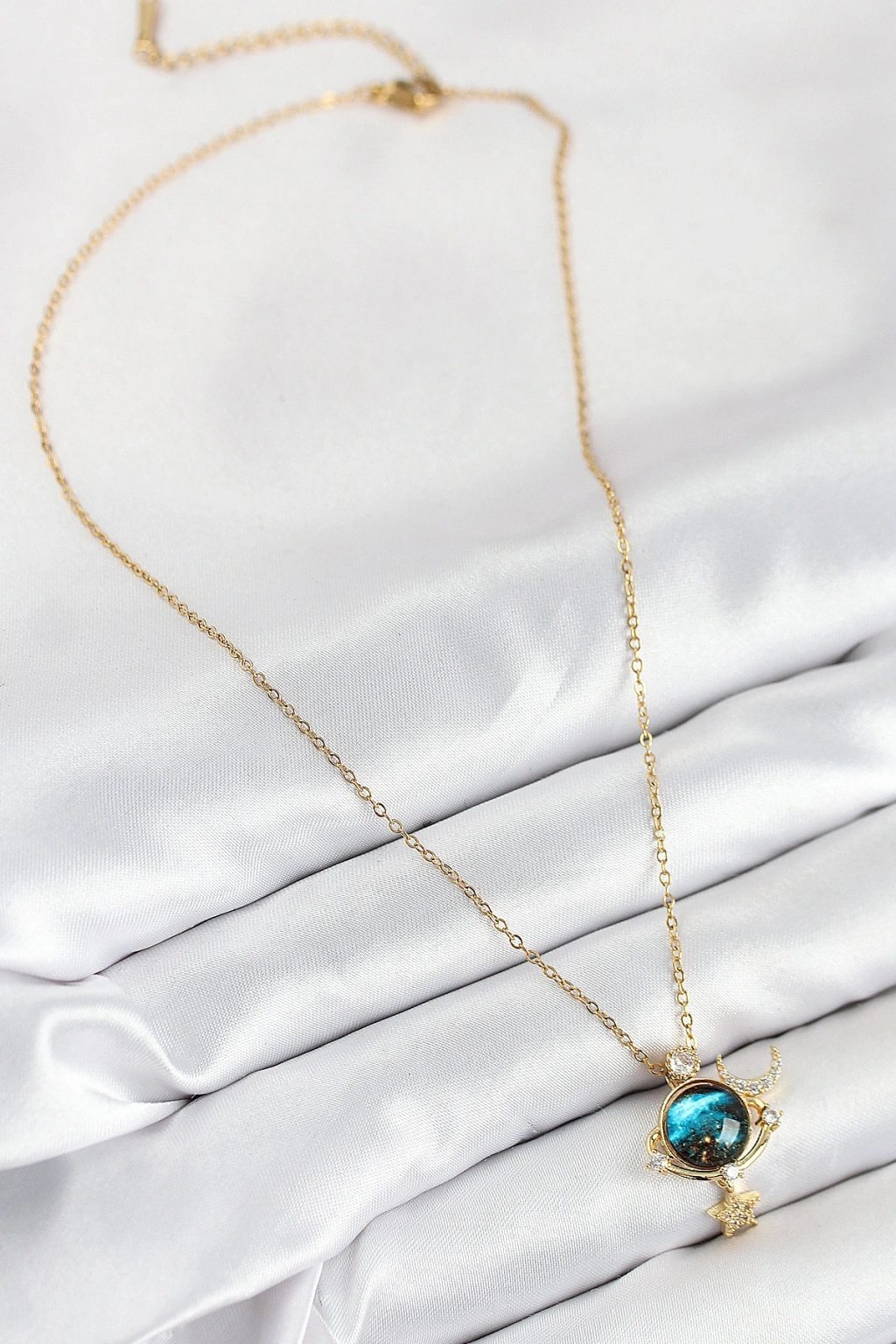 316l Çelik Zirkon Taşlı Gezegen Model Gold Renk Kadın Kolye