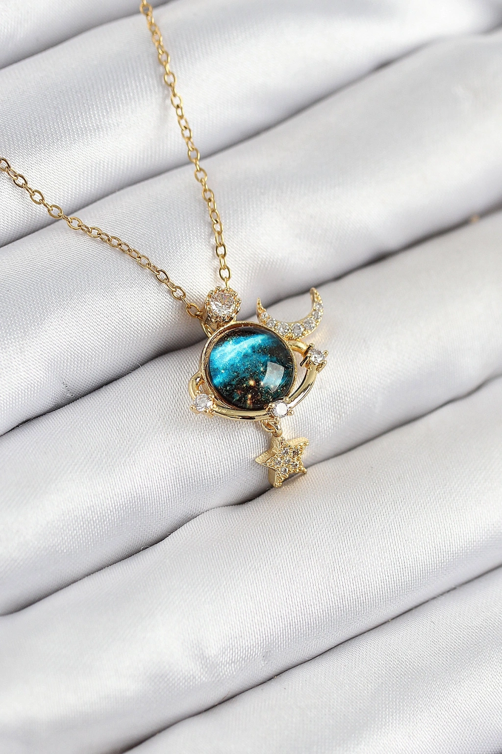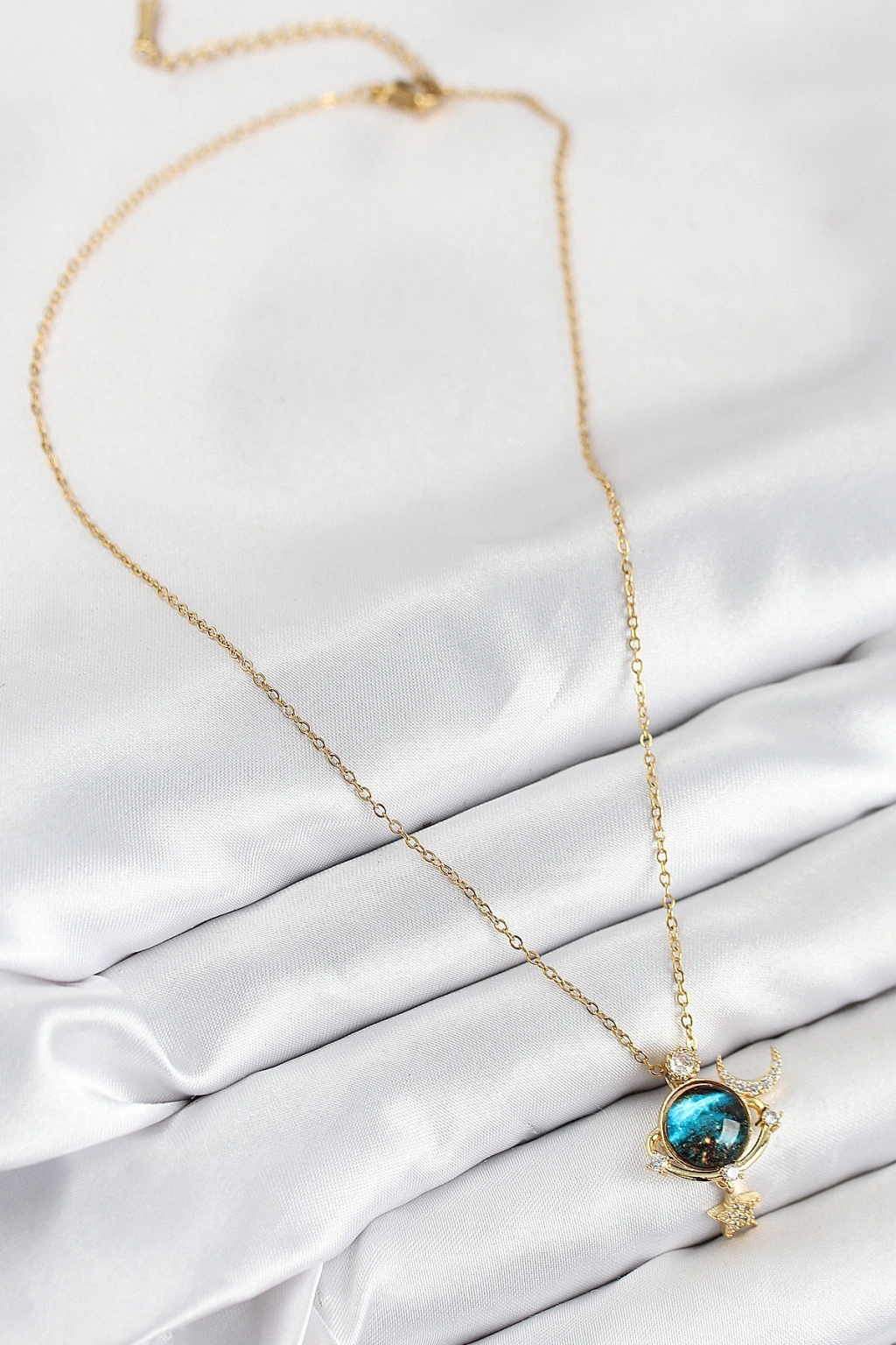 316L Çelik Zirkon Taşlı Gezegen Model Gold Renk Kadın Kolye