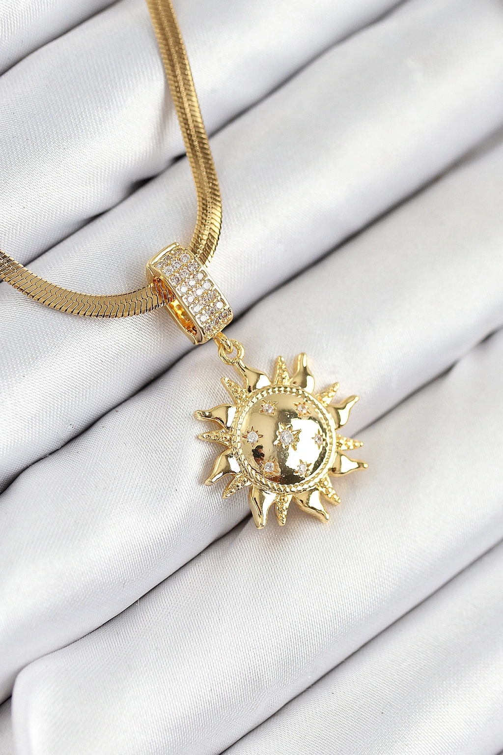 316l Çelik Zirkon Taşlı Güneş Model Gold Renk Kadın Kolye