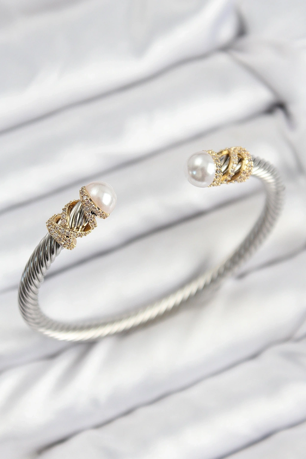 316l Çelik Zirkon Taşlı İnci Model Gold Ve Gümüş Renk Kadın Bileklik