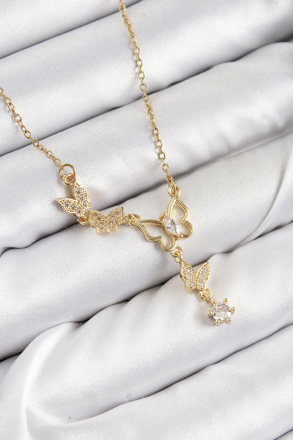 316L Çelik Zirkon Taşlı Kelebek Model Gold Renk Kadın Kolye