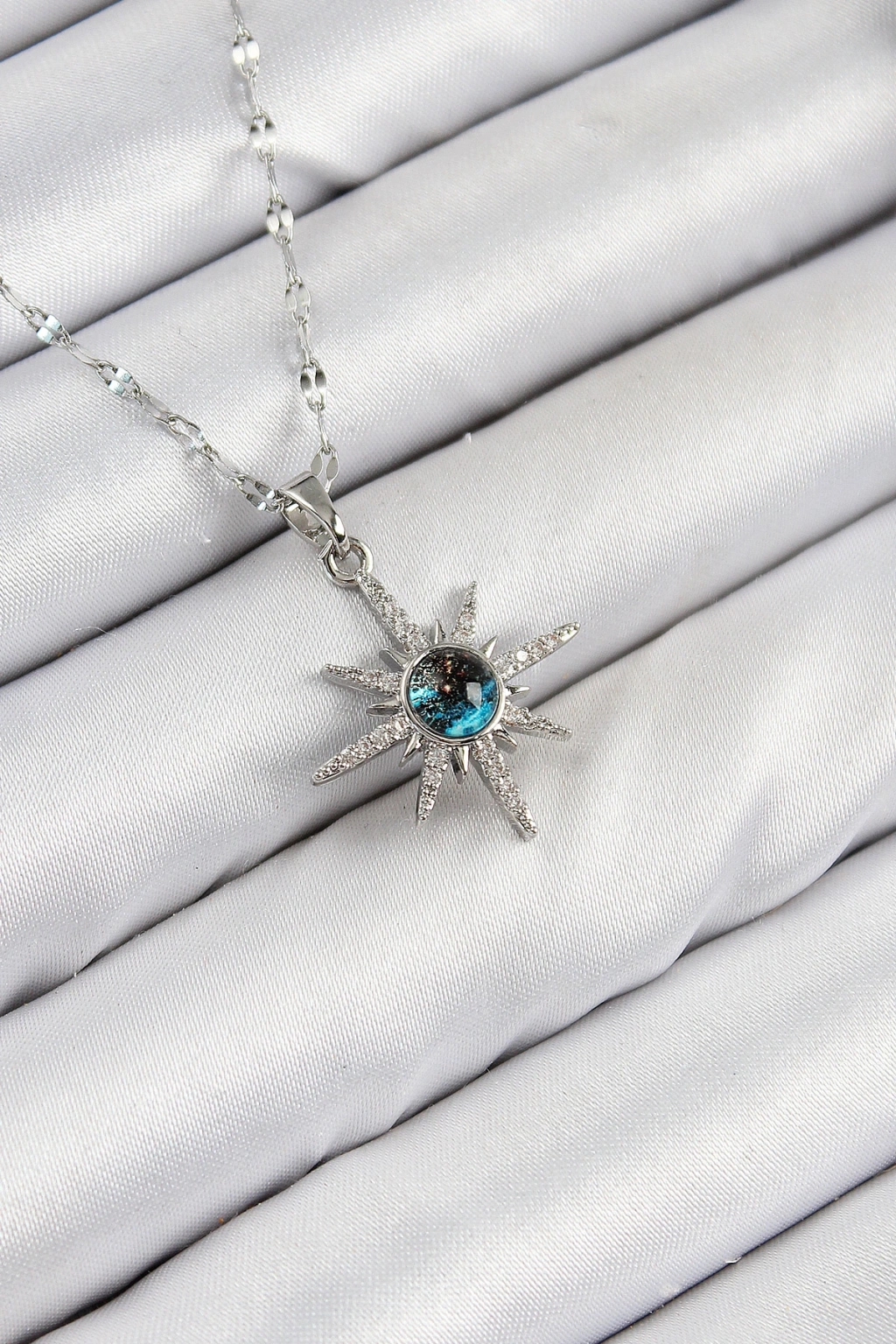 316l Çelik Zirkon Taşlı Kutup Yıldızı Model Gümüş Renk Kadın Kolye