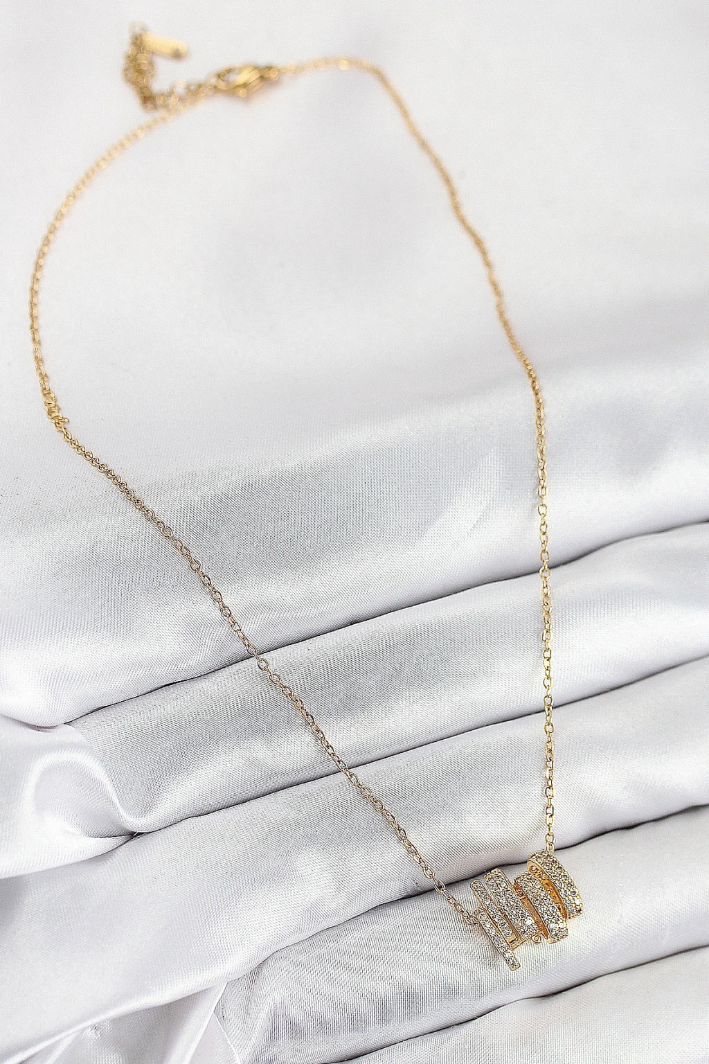 316l Çelik Zirkon Taşlı Sarmal Model Gold Renk Kadın Kolye