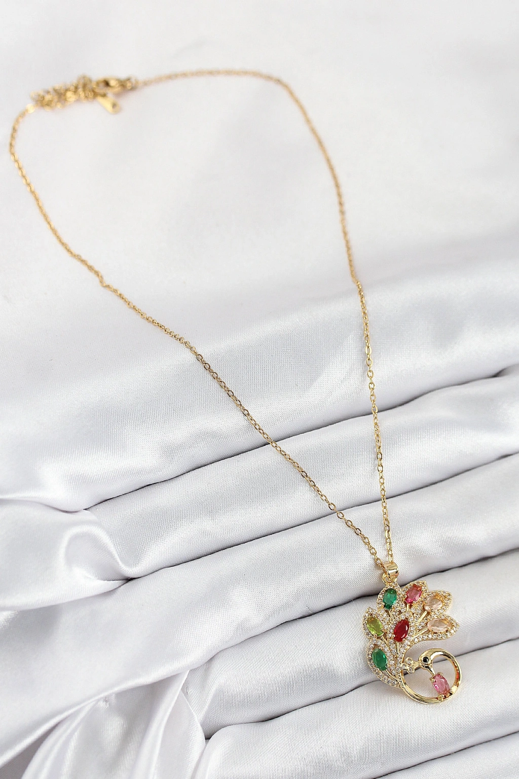 316l Çelik Zirkon Taşlı Tavus Kuşu Model Gold Renk Kadın Kolye