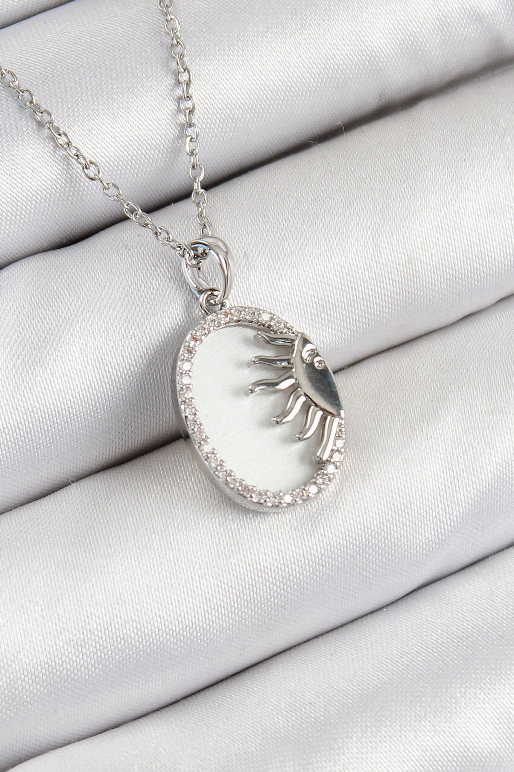316l Çelik Zirkon Taşlı Yarım Güneş Model Gümüş Renk Kadın Kolye