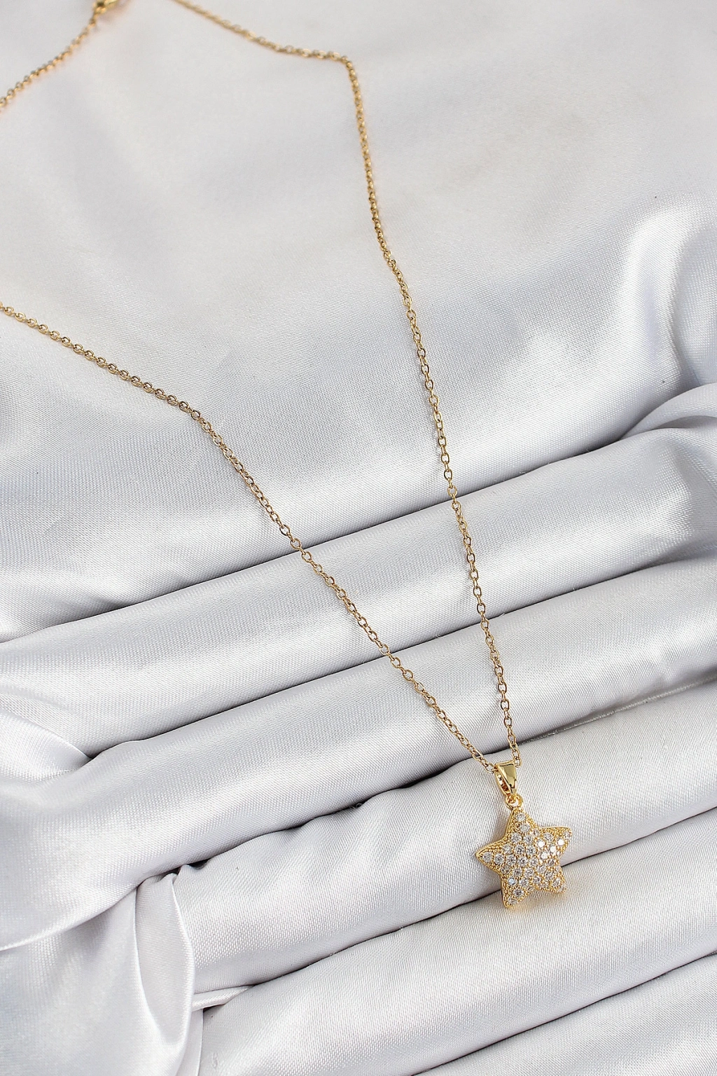 316L Çelik Zirkon Taşlı Yıldız Model Gold Renk Kadın Kolye