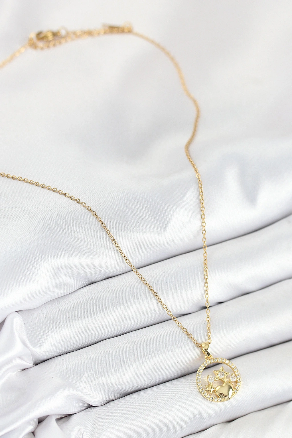 316l Çelik Zirkon Taşlı Yıldız Ve Kalp Model Gold Renk Kadın Kolye