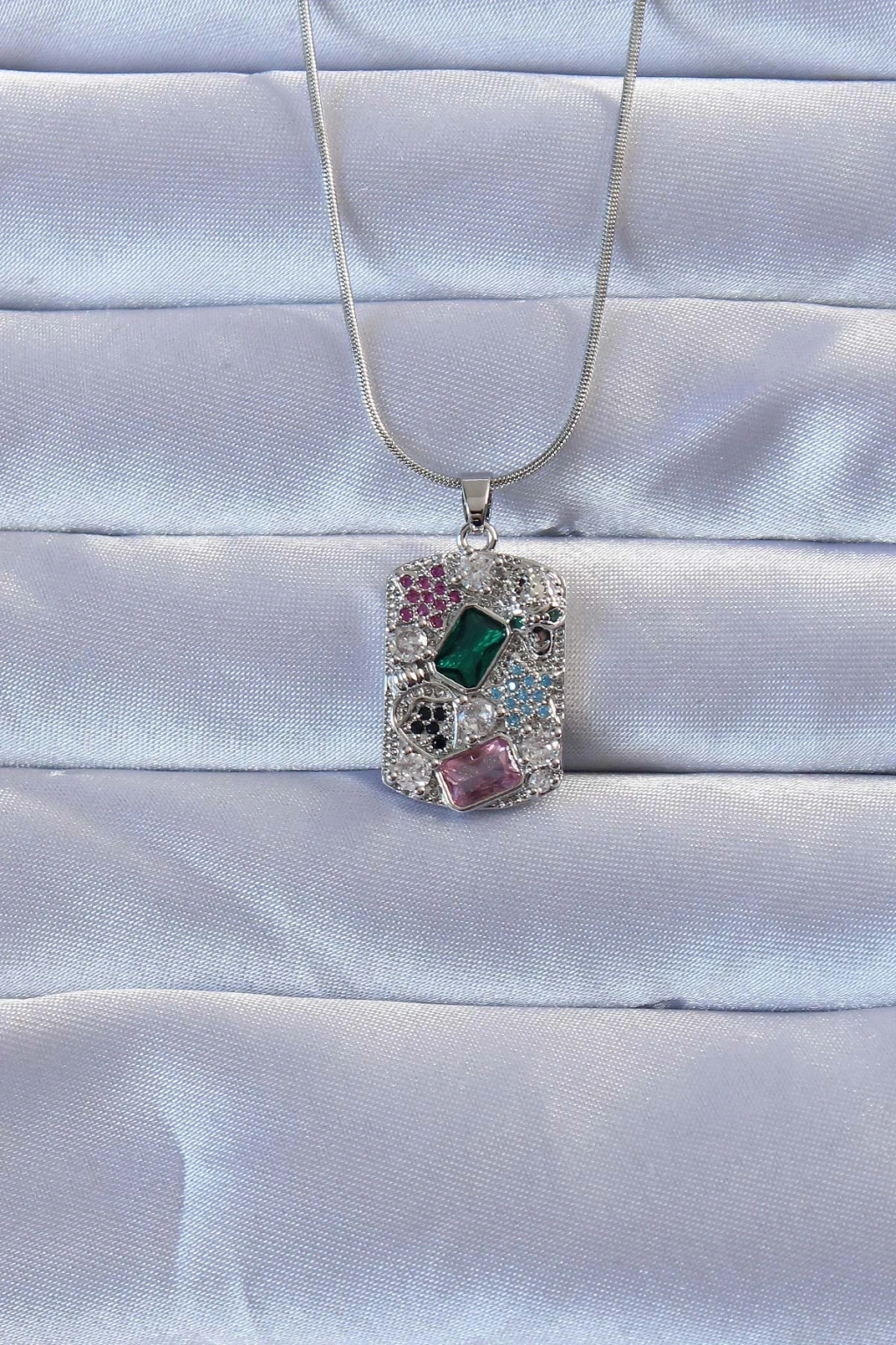 316l Gümüş Renk Çok Renkli Zirkon Taşlı Vintage Kolye